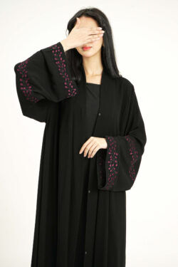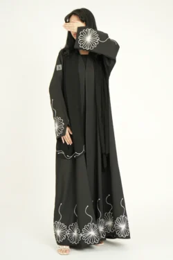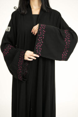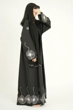 عباية بلاك مطرزه بدقات ورود من الاطراف