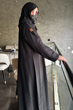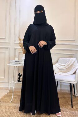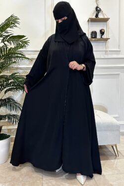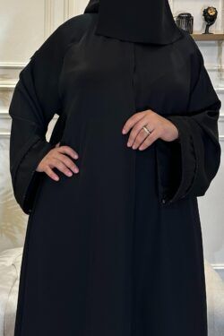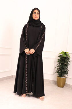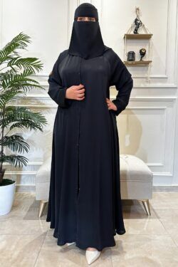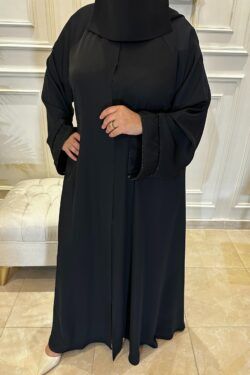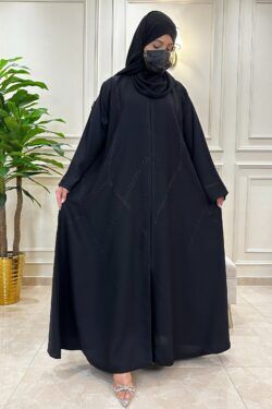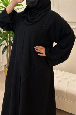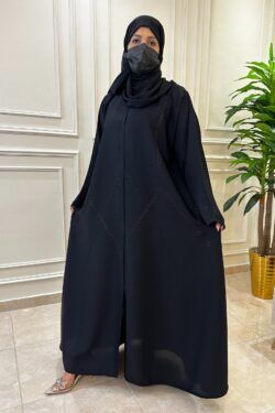 عباية كلوش مخيط بدقات أسود من الأمام