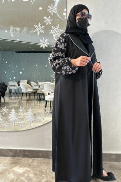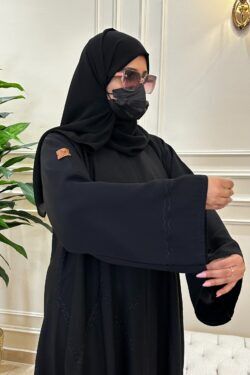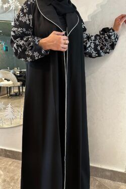 عبايه كتف بتطريز اسود على اكمام كامل