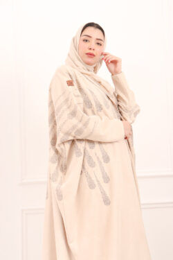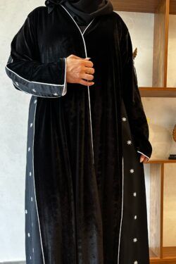 عبايه مخمل بتطرير على اجناب واكتاف بلون ابيض