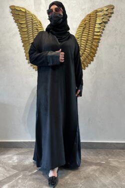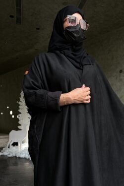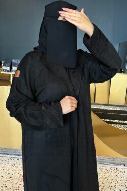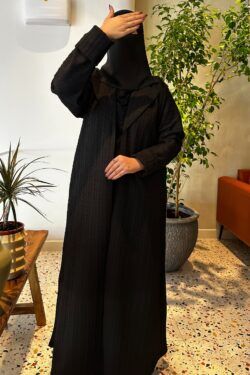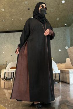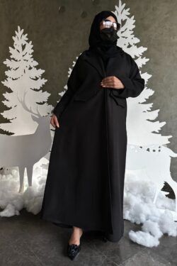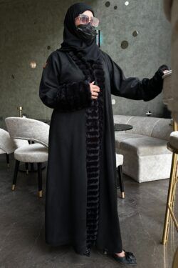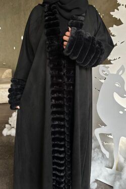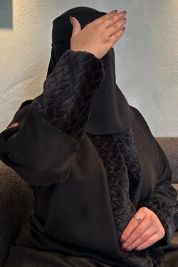 عبايه شتويه بتصميم انيق على اكمام بنحاسي و اسود