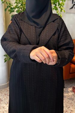 عبايه فكرو لياقه و جيوب بزراير على اكمام محدده