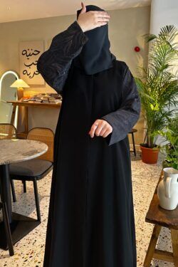 عبايه بدقات بكم مفصول مشجره بلاسود و نحاسي