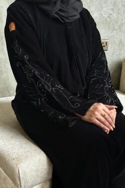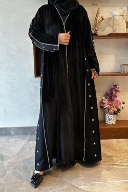 عباية مخمل مع تداخل كسرات و كلفه اسود من اكمام و امام
