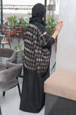 عبايه شمواه لف بتطريز نحاسي و اسود على شكل ورق شجر