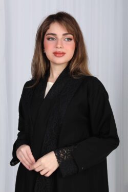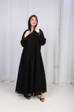عباية بأكمام دانتيل مطاط و شك على الأكمام