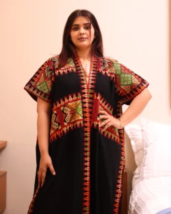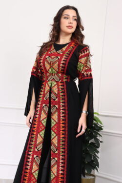 جلابيه بتطريز عربي و بكم وسيع احمر