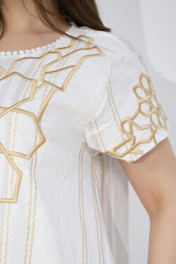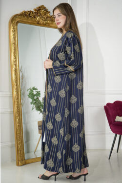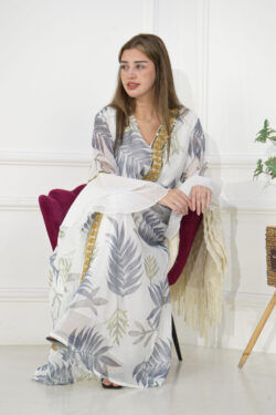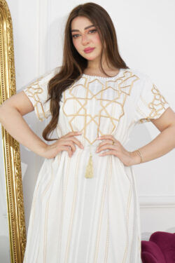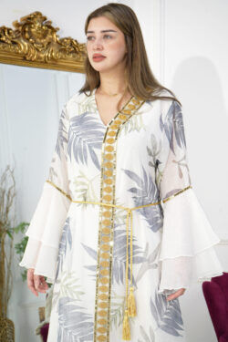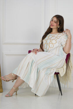 جلابية جاكار مشجره تيفاني بطبقة داخلية و شريط فصوص