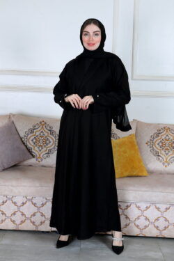 عباية بطبقة داخلية مع ربطة جانبية بكم جلد مفتوحة