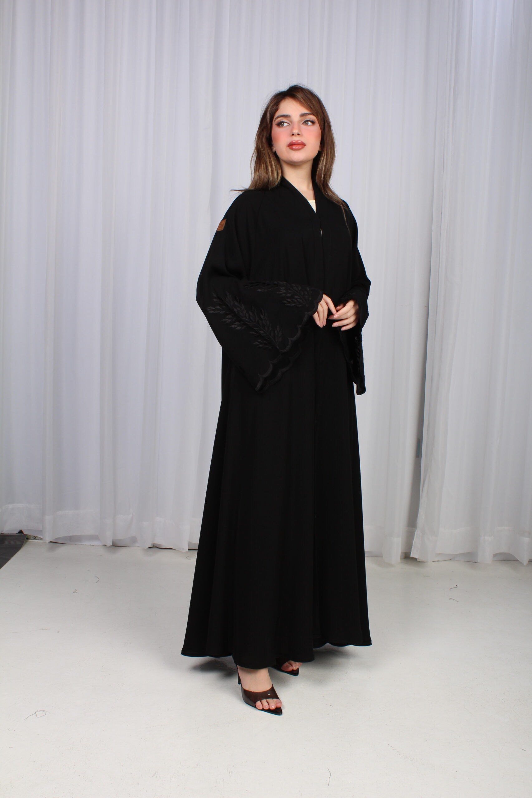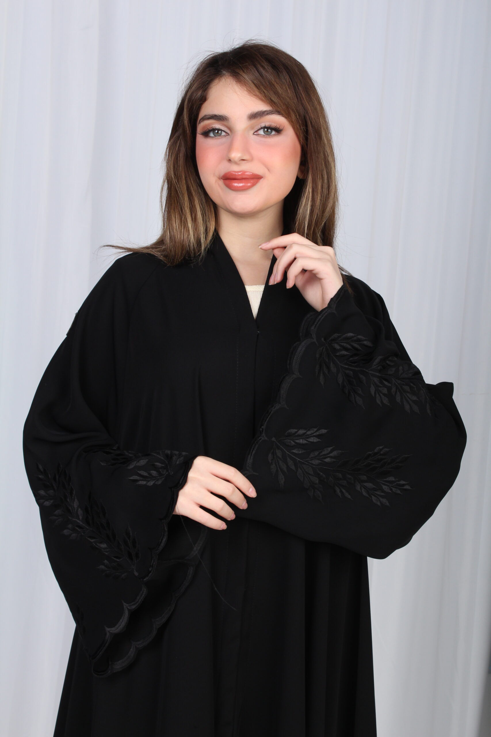 عباية بطبقة داخلية مع ربطة جانبية بكم جلد مفتوحة