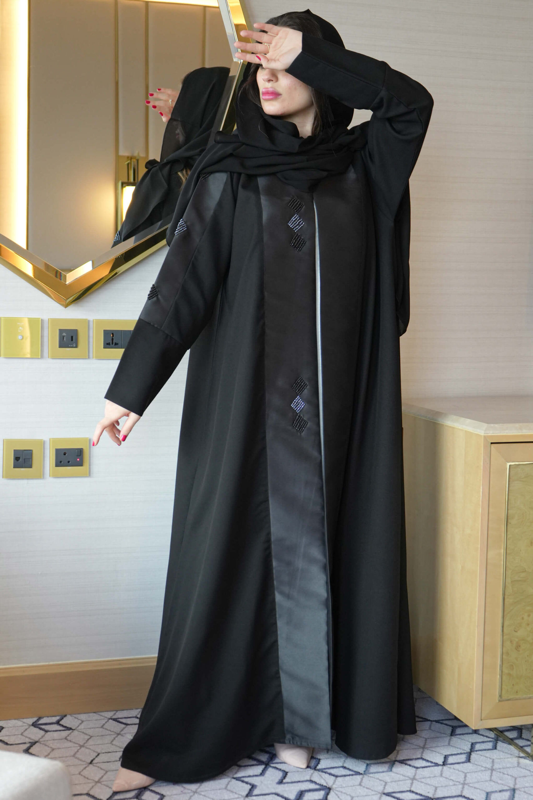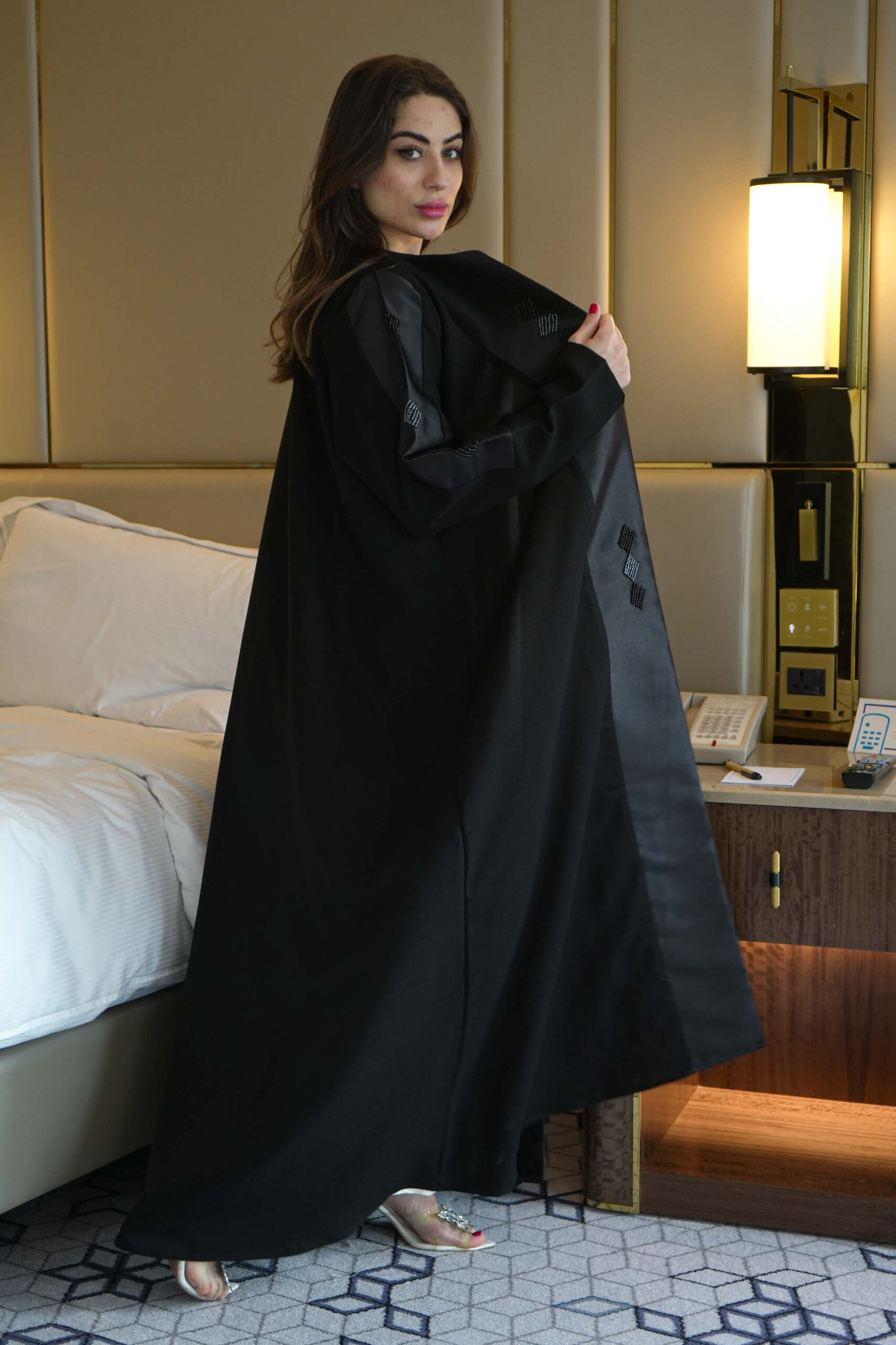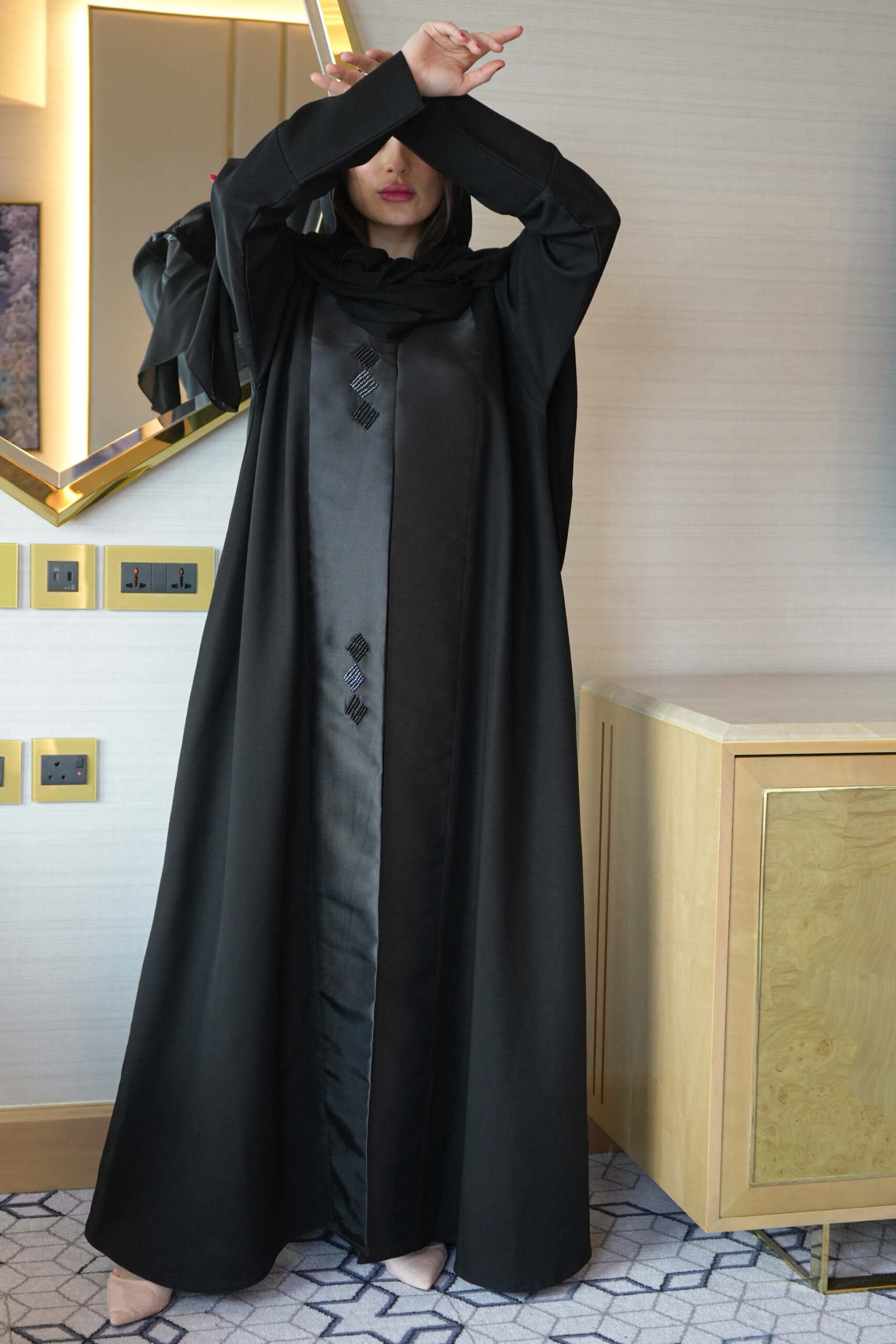 عباية بطبقة داخلية مع ربطة جانبية بكم جلد مفتوحة