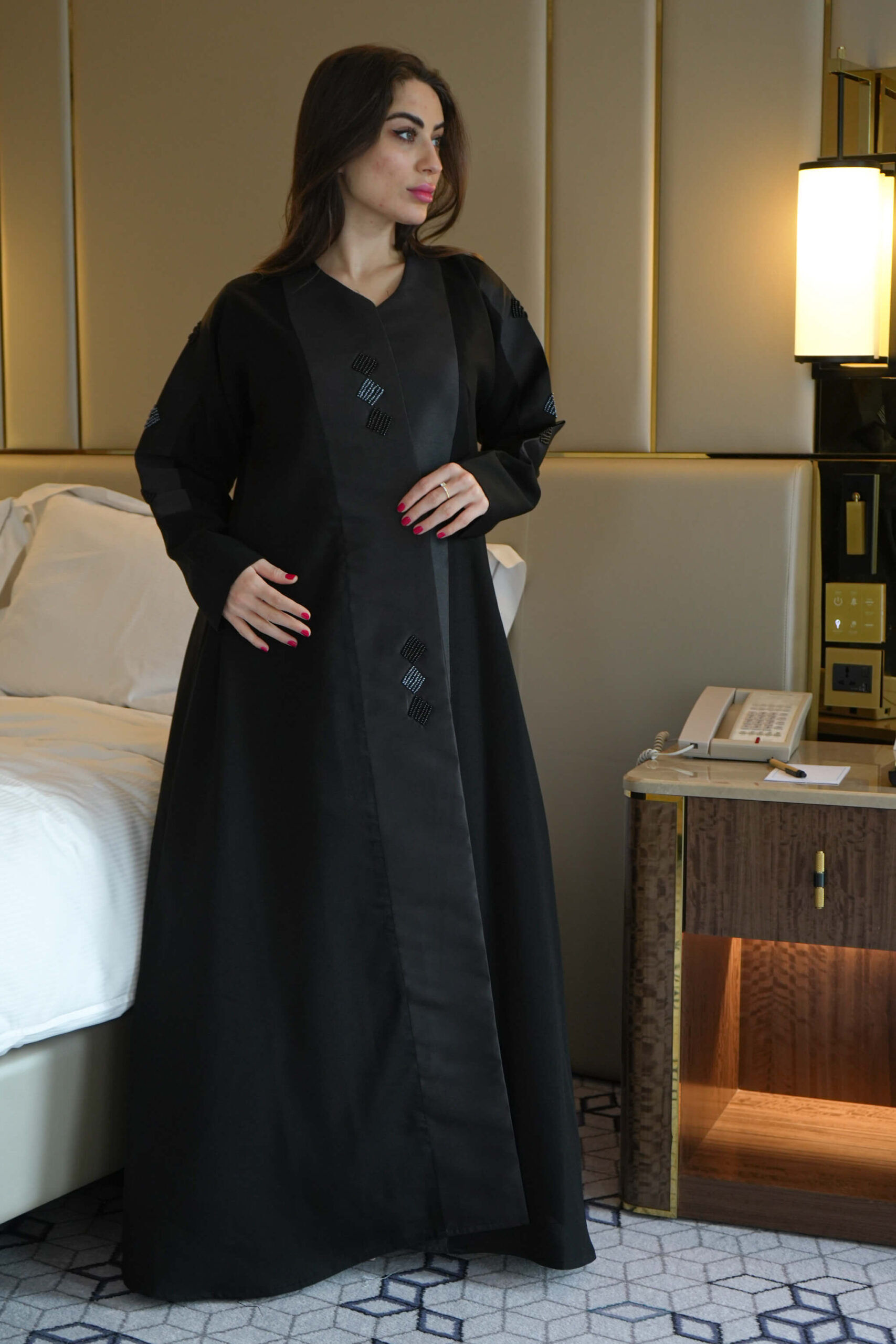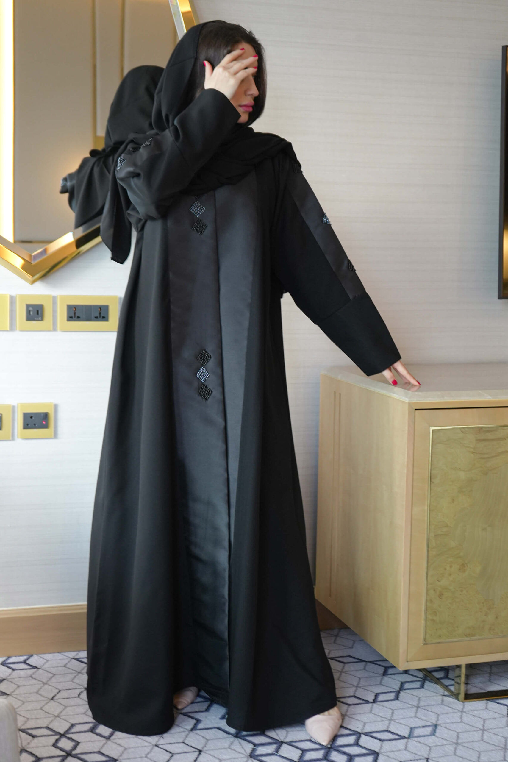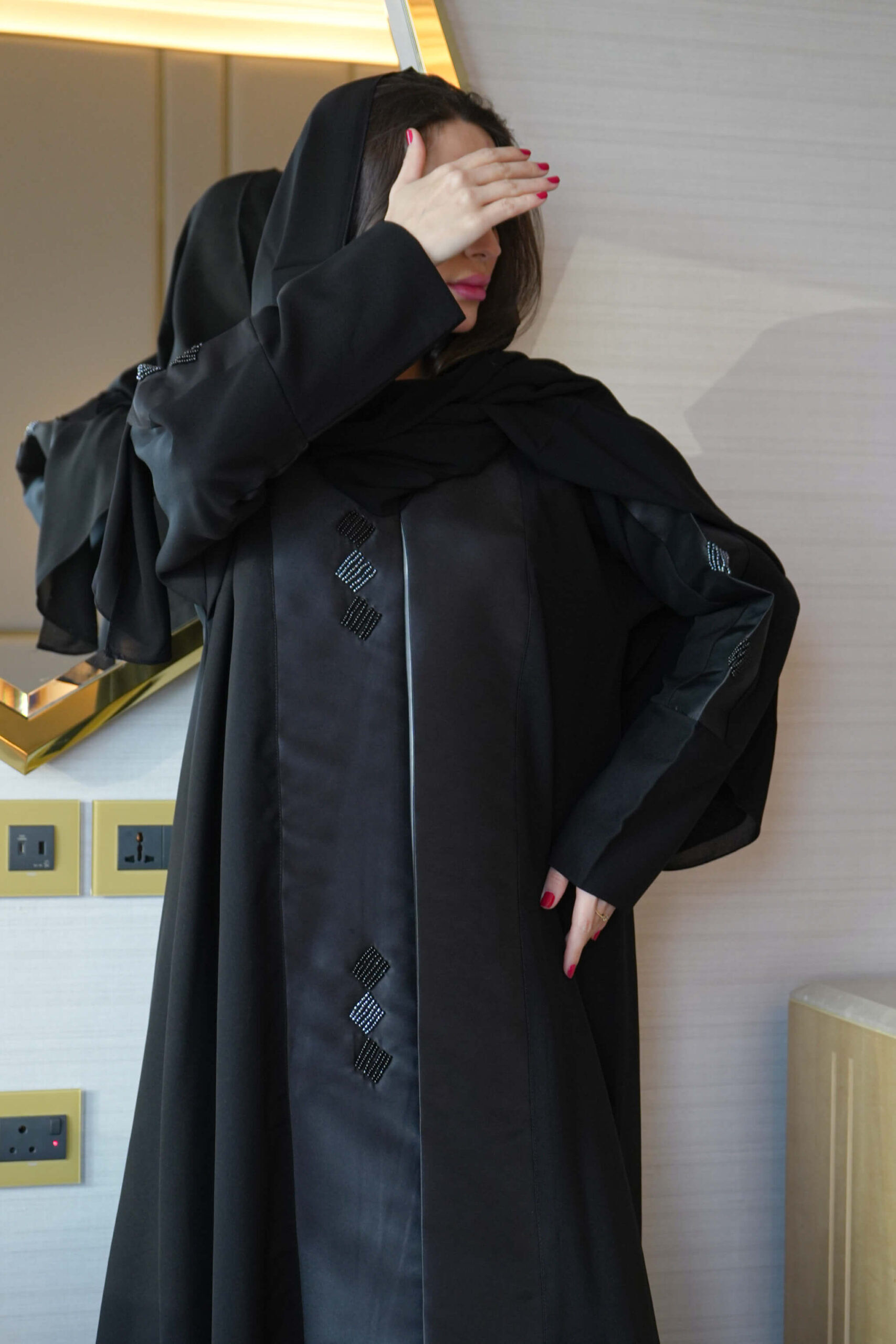 استمتعي بإطلالة عملية مريحة ، و بنفس الوقت فخمة و جذابة ، عند اقتناء عباية مطرزة بشك اسود ورمادي من امام واكتاف ، فهي عباية كشخة أنيقة ، مصممة بموديل جميل نسائي راقي و مميز ، و مصنوعة من أجود أنواع قماش انترنت و البارد على الجسم ، لتتحركي بكامل حريتكِ ، فهو أيضاً خالي من اللمعة و لا يشف ما تحته . و لأننا نهتم بأن تكوني الأكثر تألقاً و تفرداً ، أضفنا تطريز اسود على طول العباية من خلف . إن كنتِ من هواة الموضة و التصاميم الفريدة ، من الضروري أن تتألقي بمثل هذه العباية !
