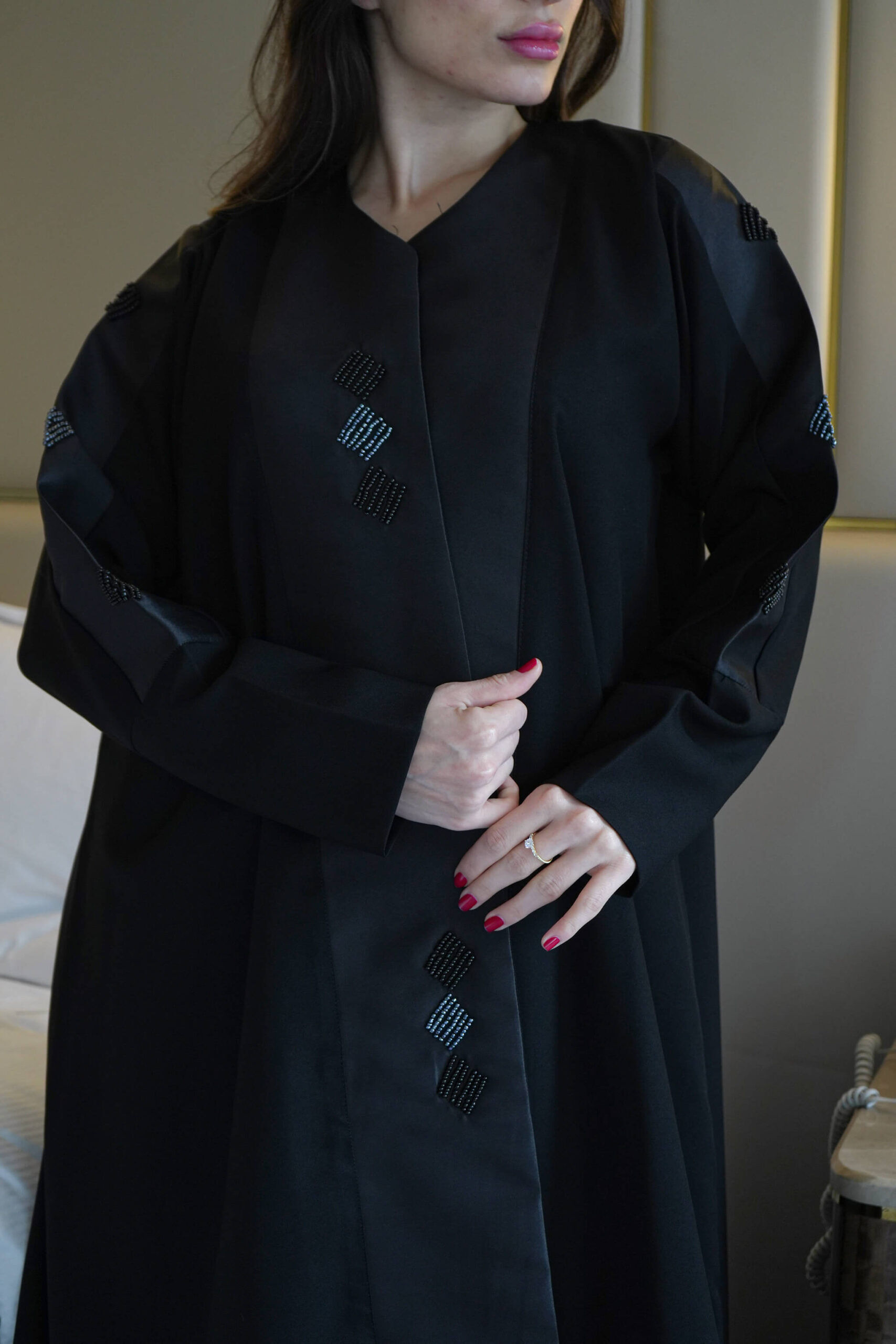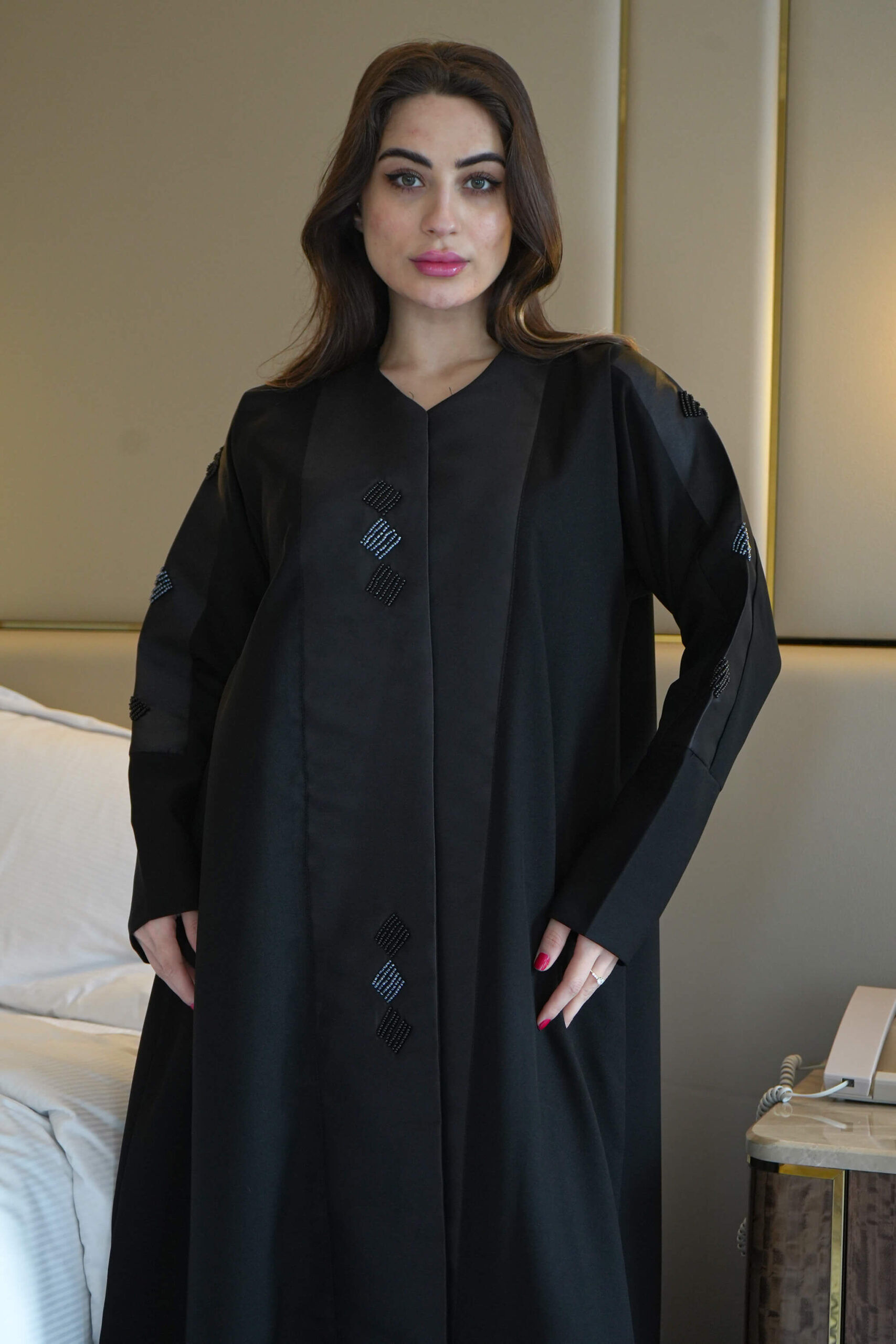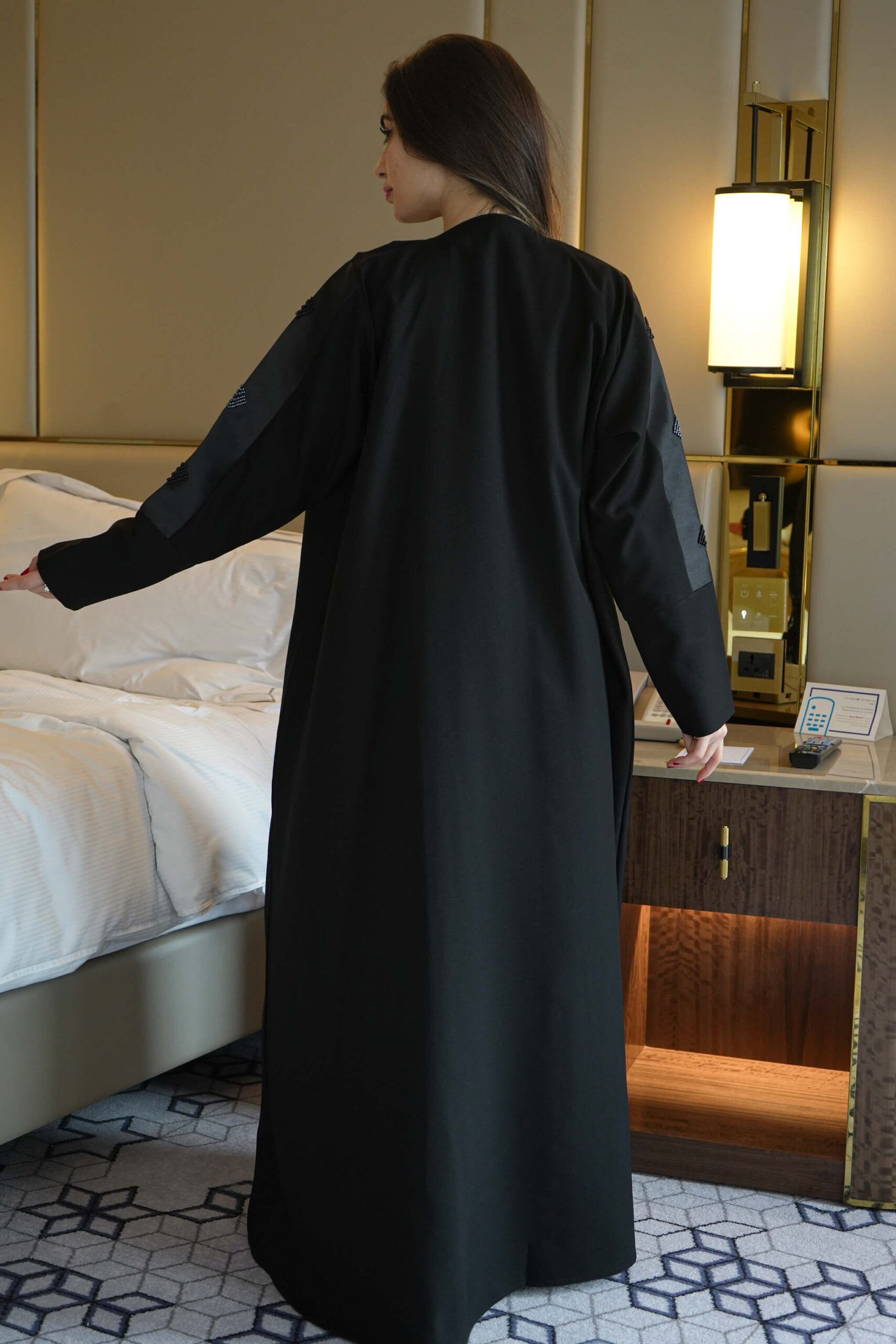 عبايه كتف بكسرات جانبيه اسود بشكل مميز