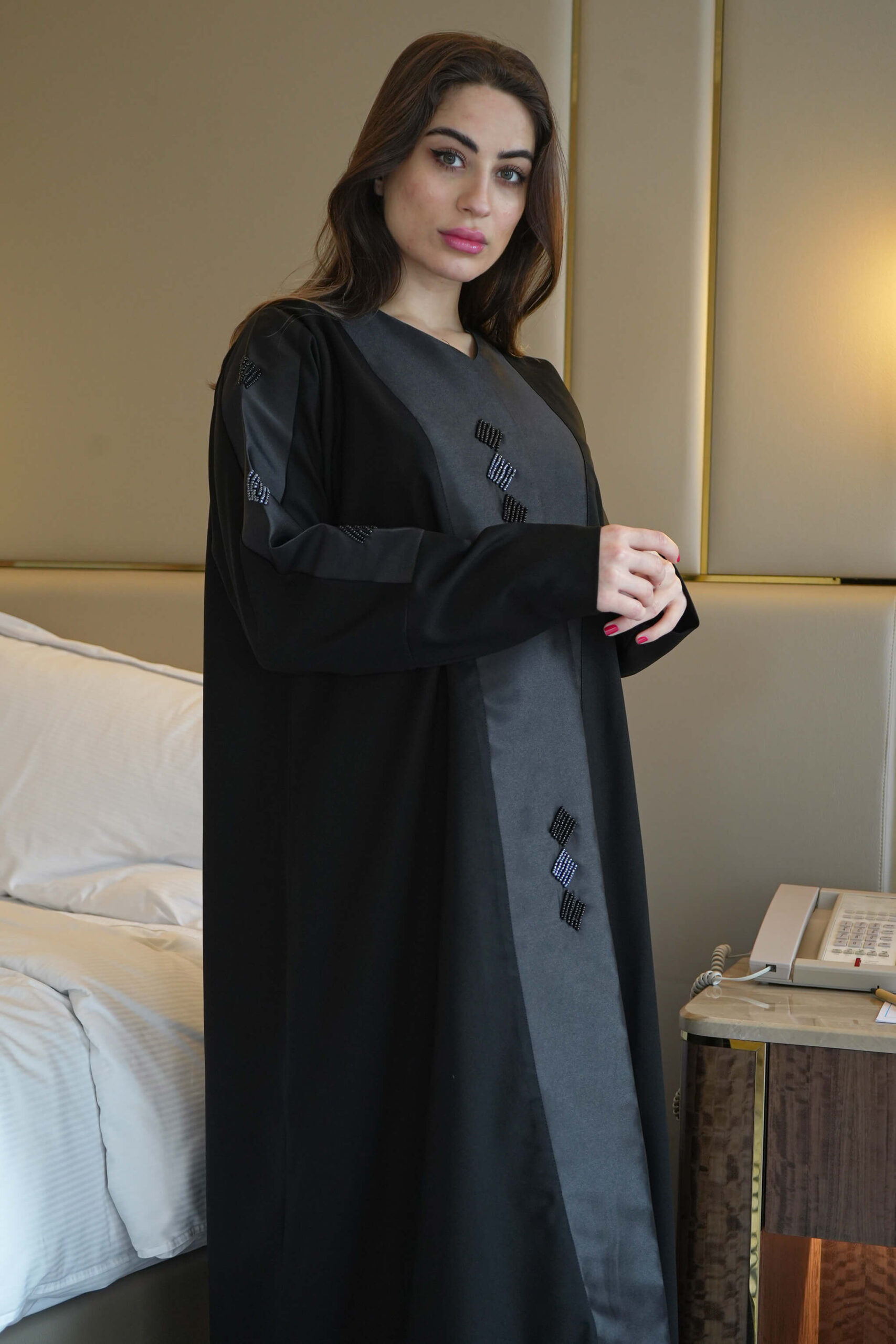 عباية كتف بشك اسود و رمادي محددة بقماش لماع