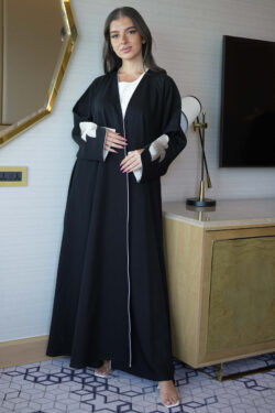استمتعي بإطلالة عملية مريحة ، و بنفس الوقت فخمة و جذابة ، عند اقتناء عباية مطرزة موف على اكمام ، فهي عباية كشخة أنيقة ، مصممة بموديل جميل نسائي راقي و مميز ، و مصنوعة من أجود أنواع قماش نواعم و البارد على الجسم ، لتتحركي بكامل حريتكِ ، فهو أيضاً خالي من اللمعة و لا يشف ما تحته . و لأننا نهتم بأن تكوني الأكثر تألقاً و تفرداً ، أضفنا تطريز اسود على طول العباية من خلف . إن كنتِ من هواة الموضة و التصاميم الفريدة ، من الضروري أن تتألقي بمثل هذه العباية !