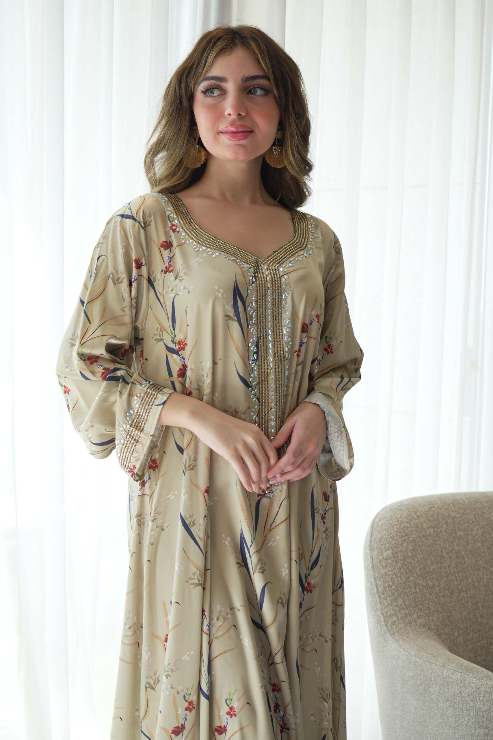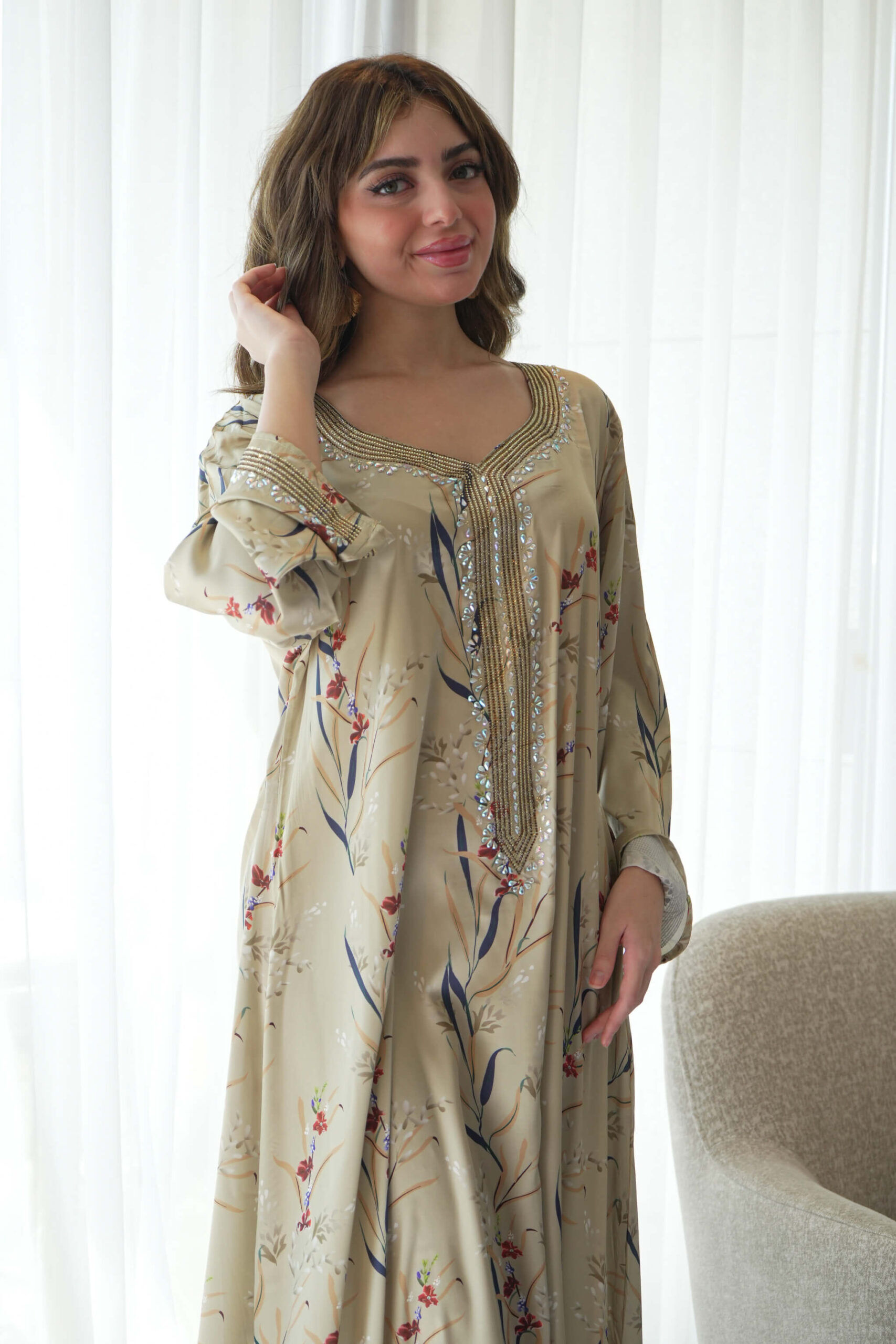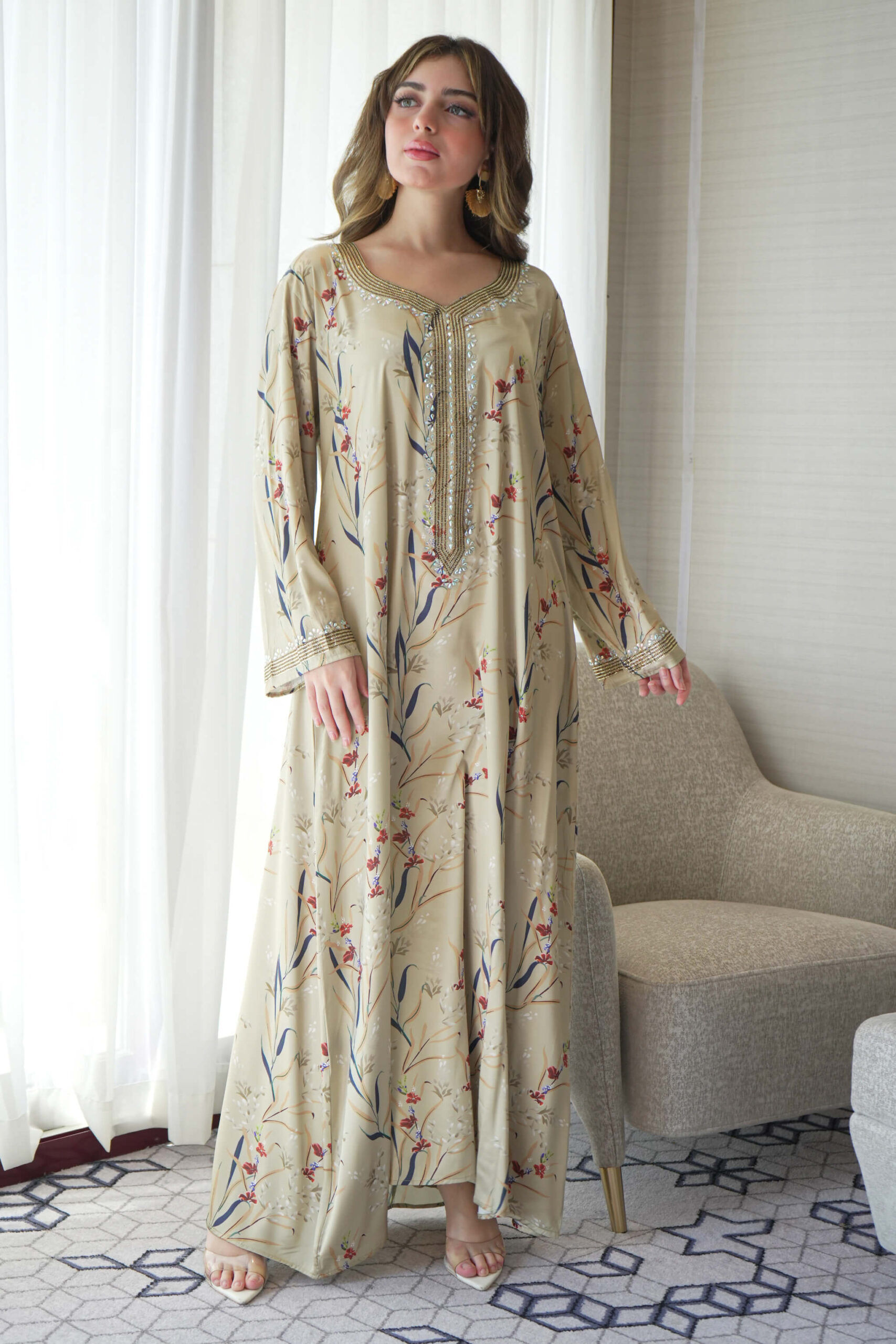جلابيه تيفاني خليجيه بتطريز وشريط فصوص من امام