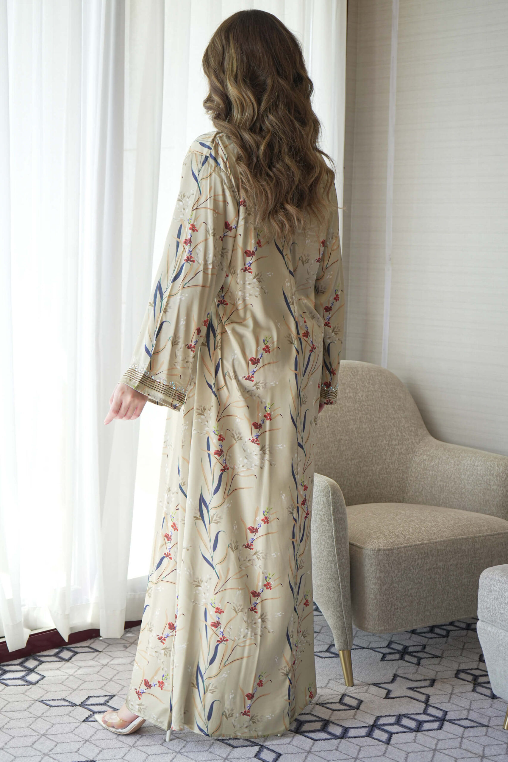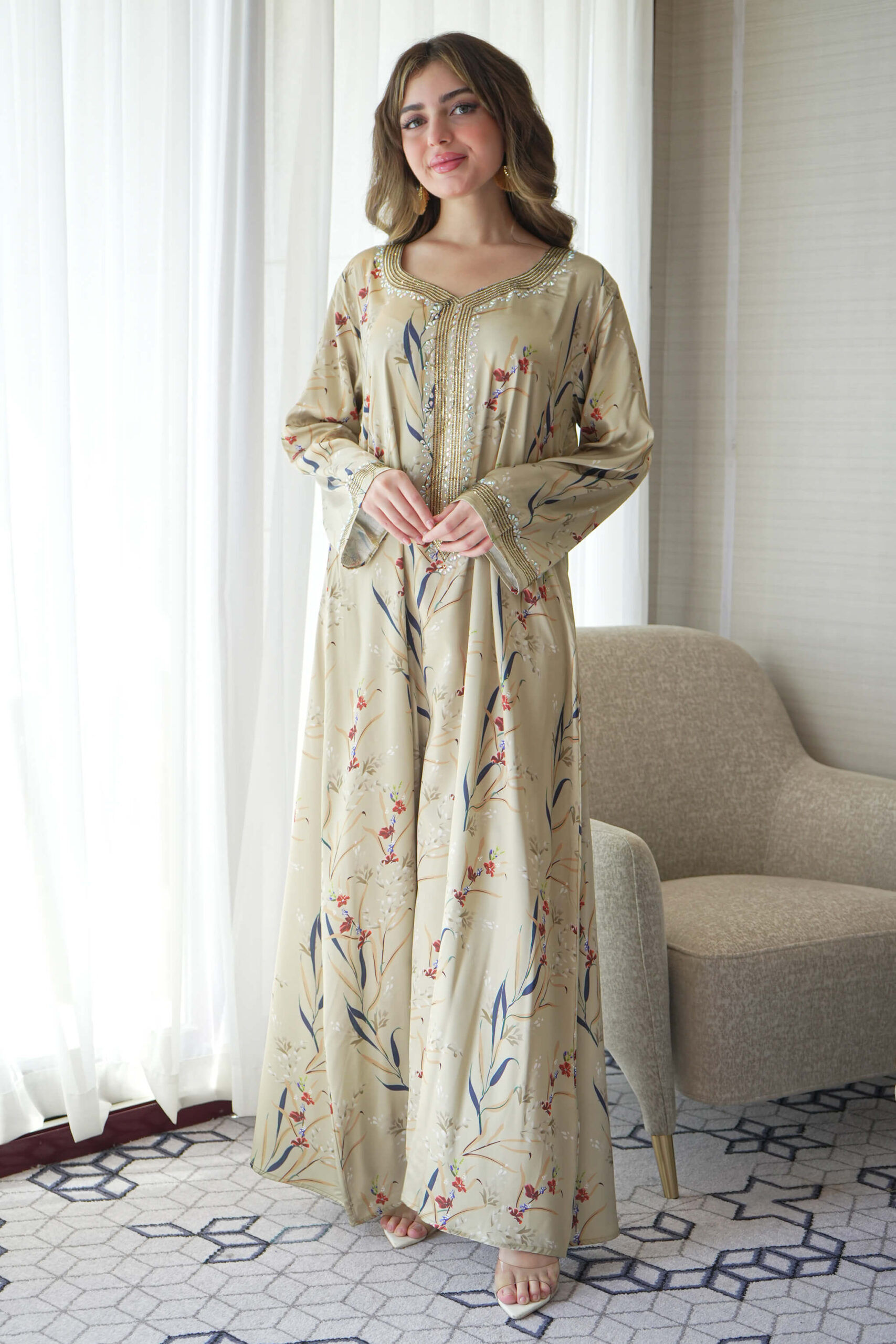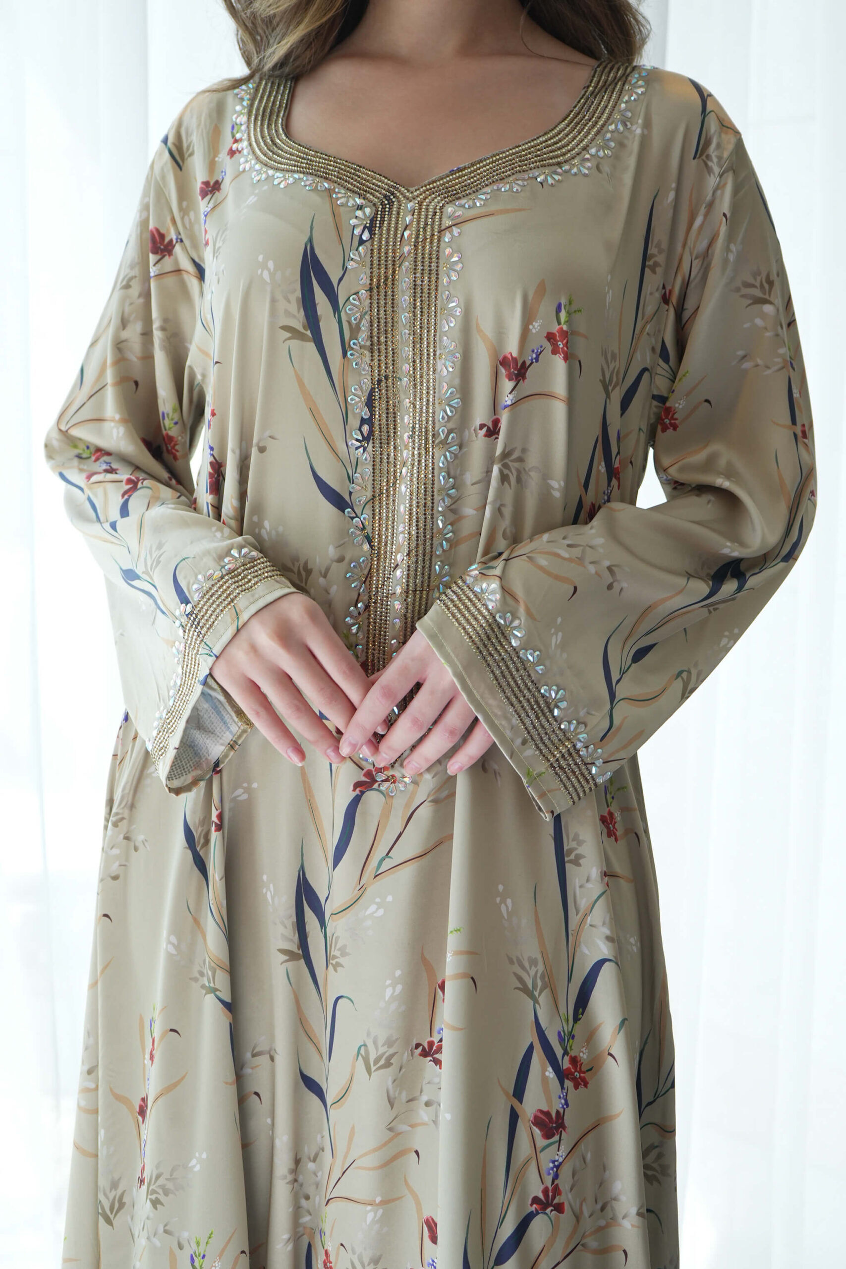 جلابيه تيفاني خليجيه بتطريز وشريط فصوص من امام
