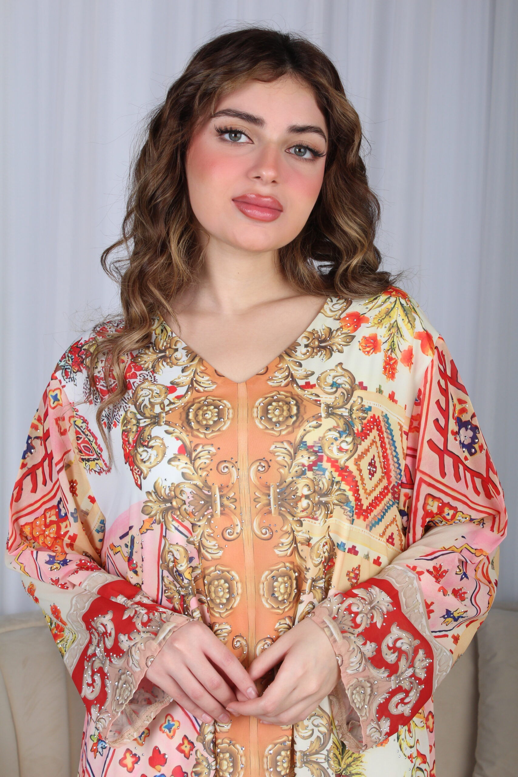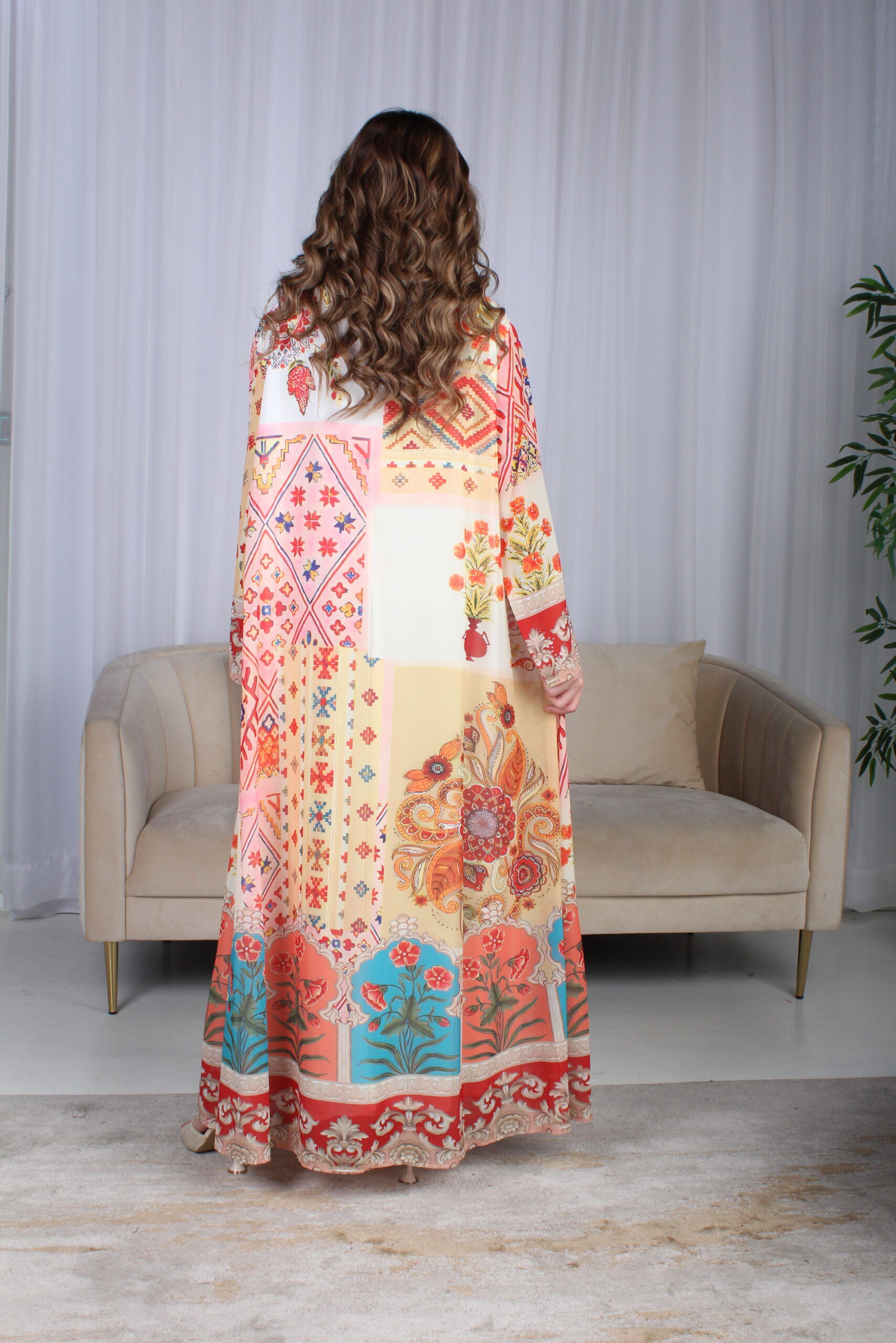 الجلابية نسجت من خامة حرير ، صممت بقصة و تطريز بالوان مختلفة بقصة كلوش ربع . لتمنحك إطلالة تستحقينها.