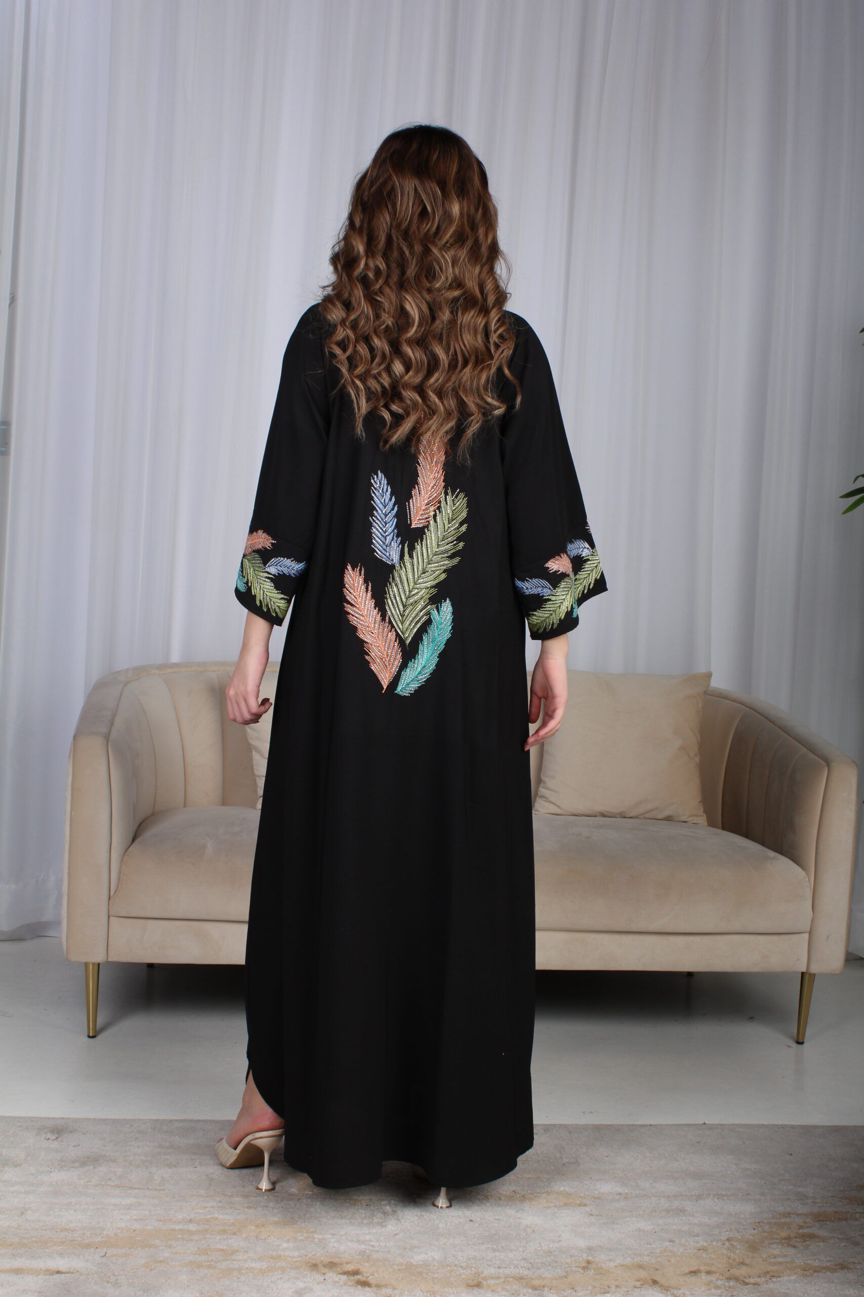 مواصفات جلابية اسود مرسومه باوراق شجرة بالوان :