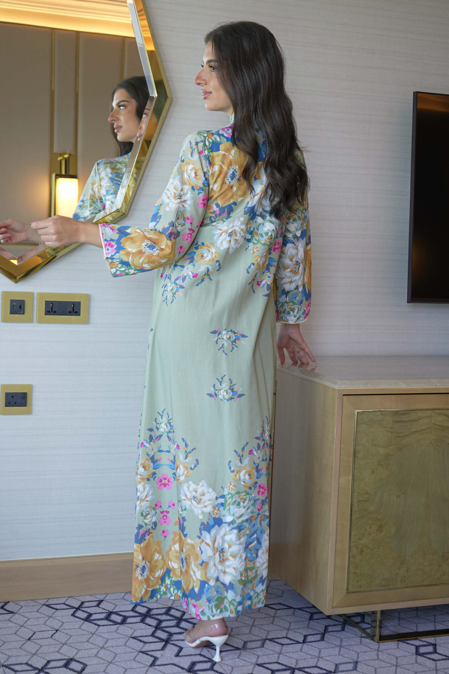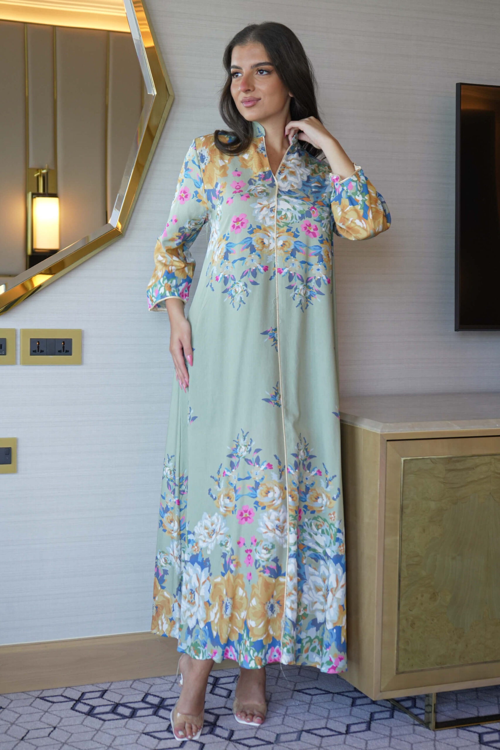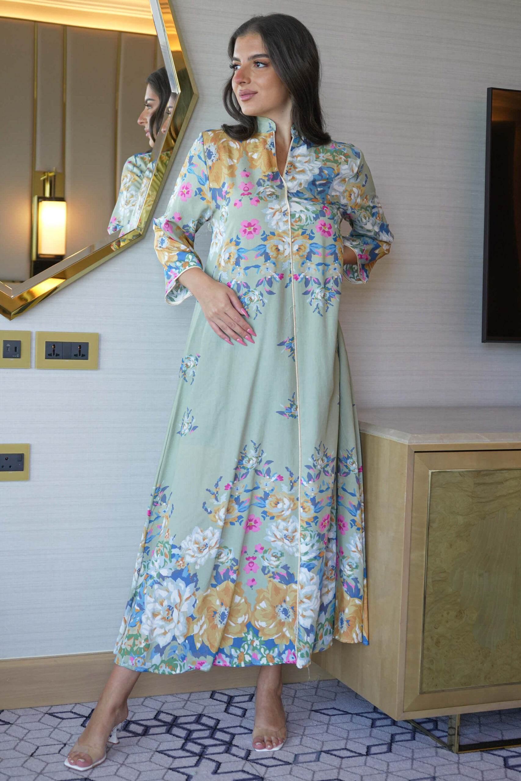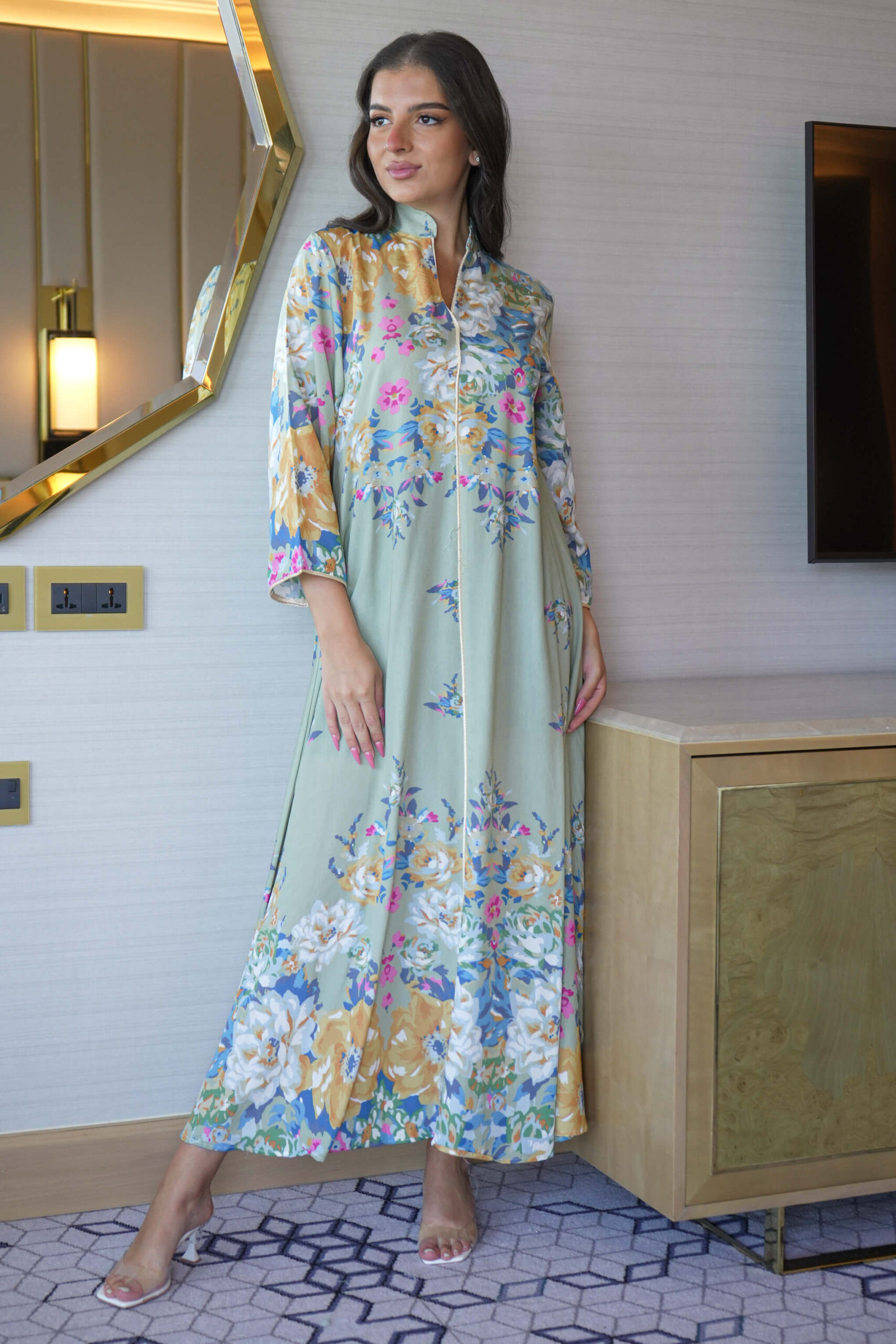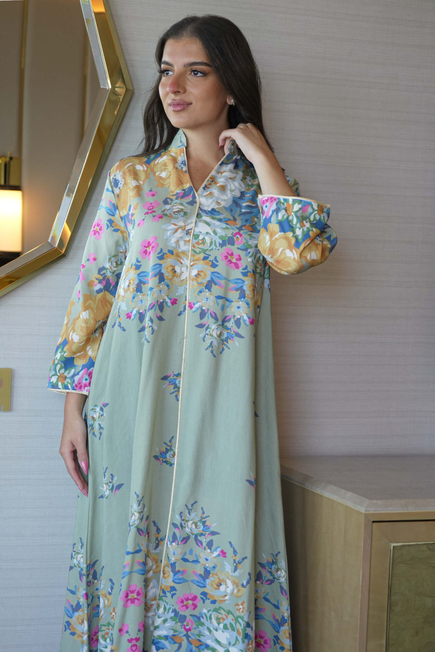 جلابية تيفاني بلياقه مشجره كامل بورود مرسومه (7)