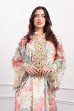 - الموديل: جلابية مشجره بتطريز ذهبي.