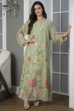 جلابية مطرزة بترتر فخمة وأنيقة لإطلالة تميز حضورك في المناسبات والجمعات العائلية.