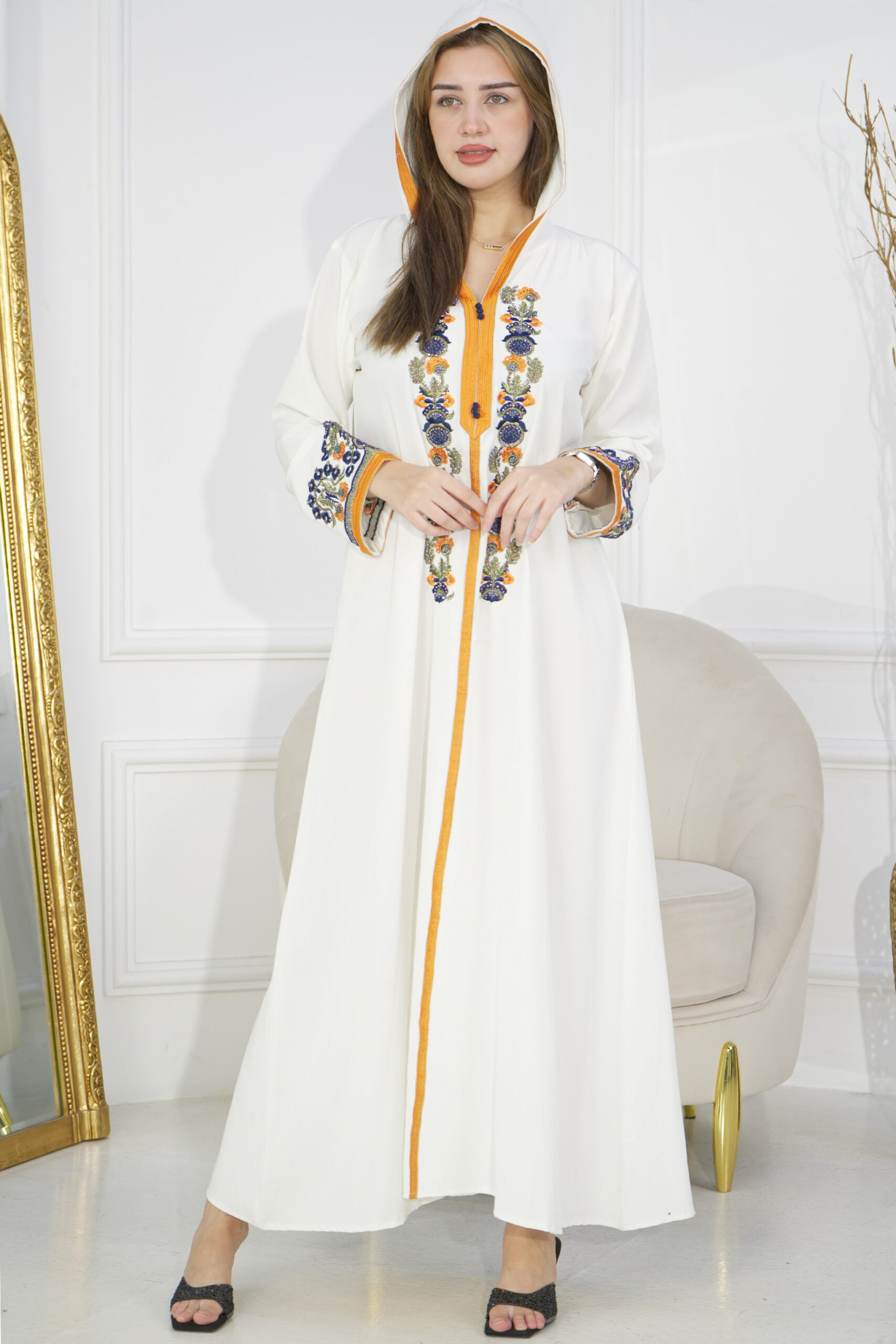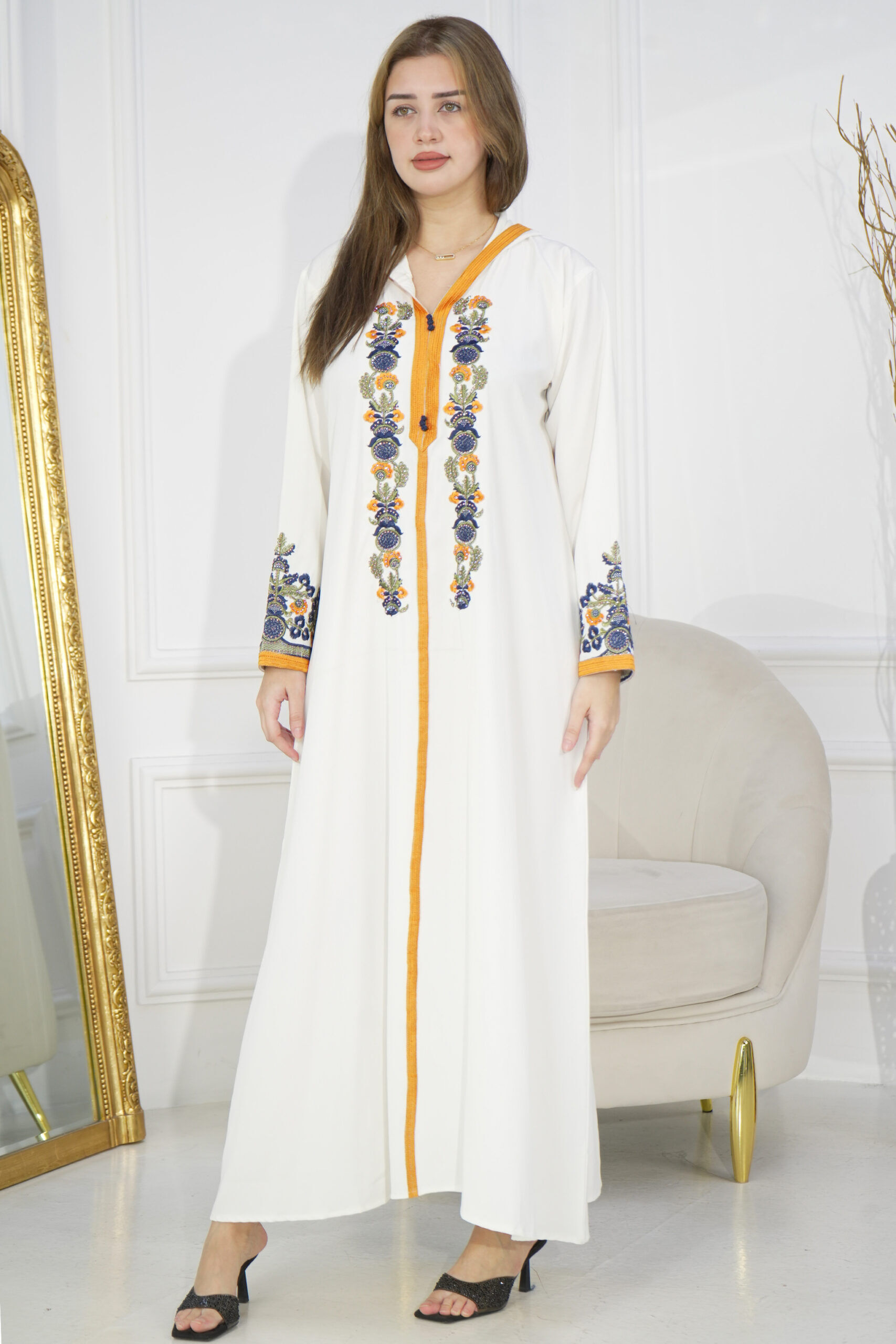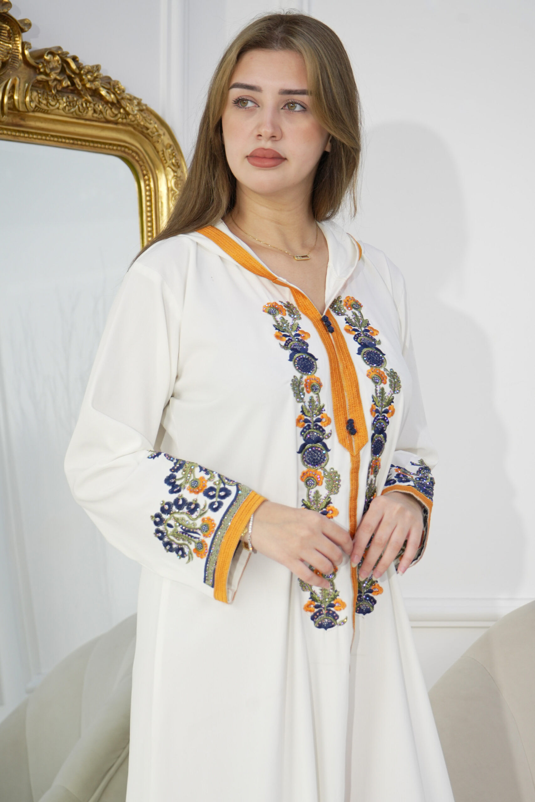 جلابيه ابيض مغربيه بتطرز شك من امام