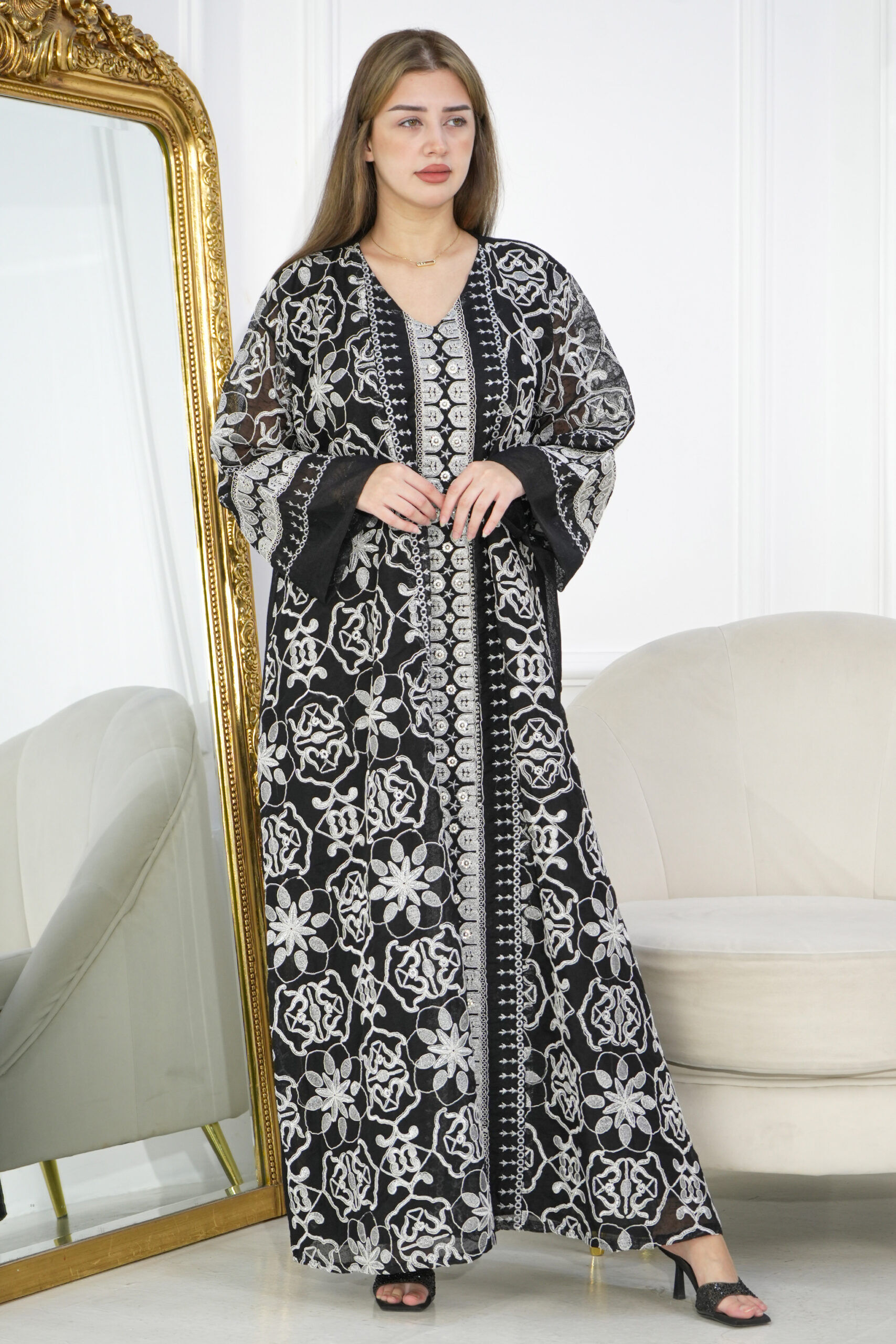 جلابيه اخضر بطبقه داخليه و تطريز من الصدر ممتده على اكتاف