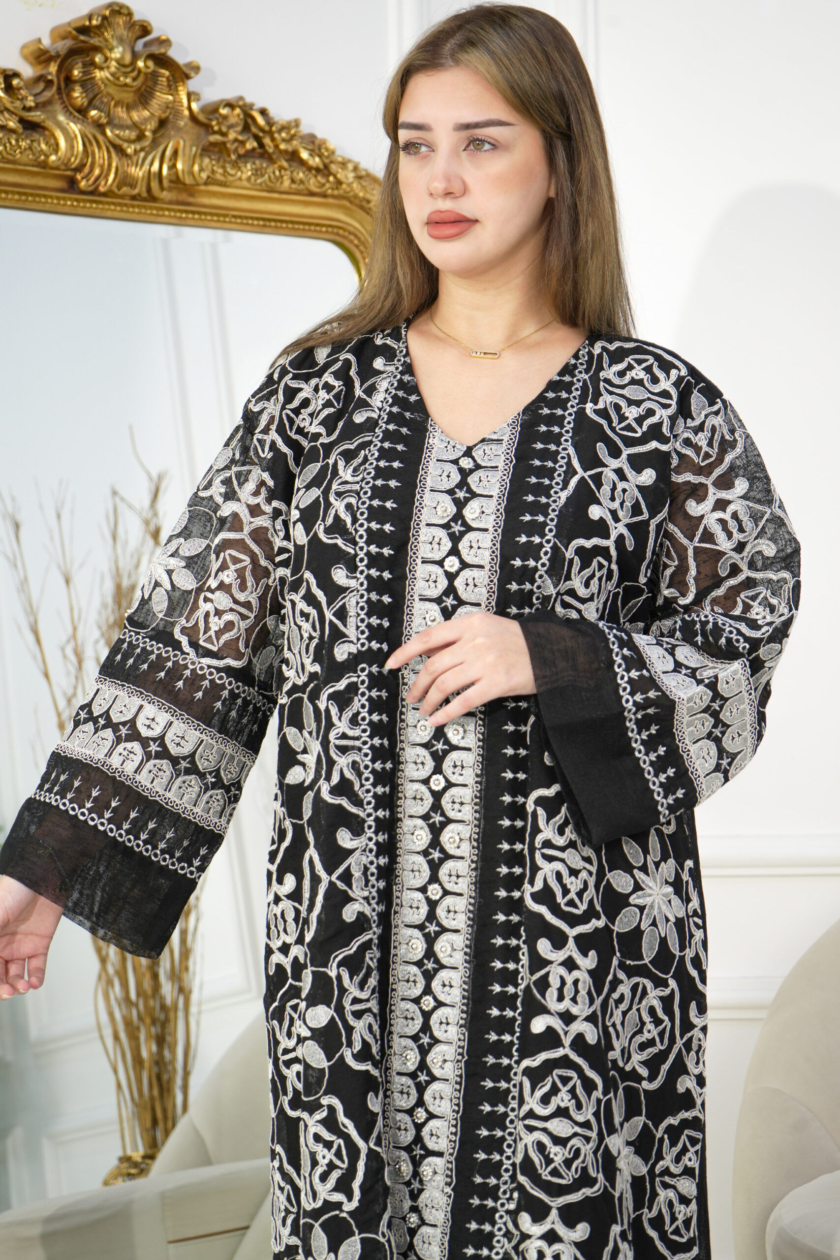 - شكل المنتج : تصميم وسيع بتطريز ملون من الاكمام و الامام