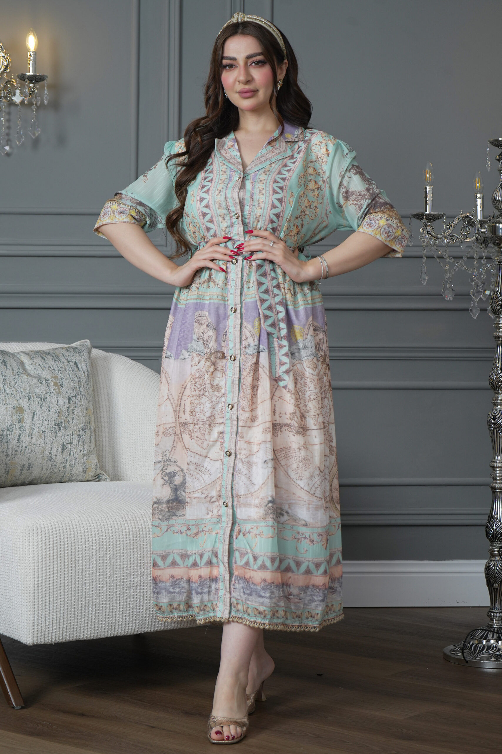 - الموديل: جلابية بلياقه ذات تصميم جذاب ومميز