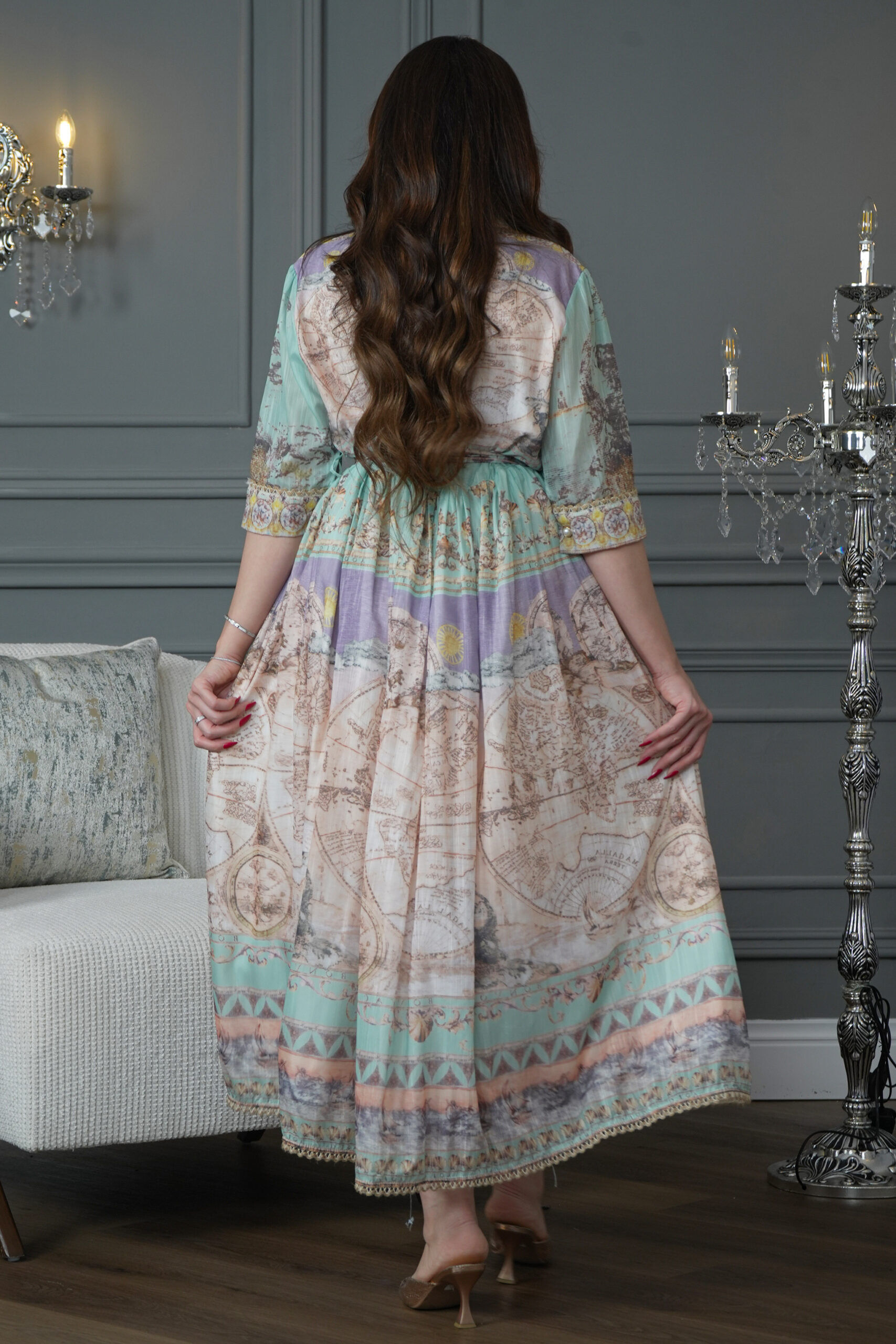 جلابية مفتوحة بلون مندمجه بتيفاني وبيج تصميم جذاب ومميز تلفت حولك الأنظار في أي مناسبة أو جمعة عائلية.