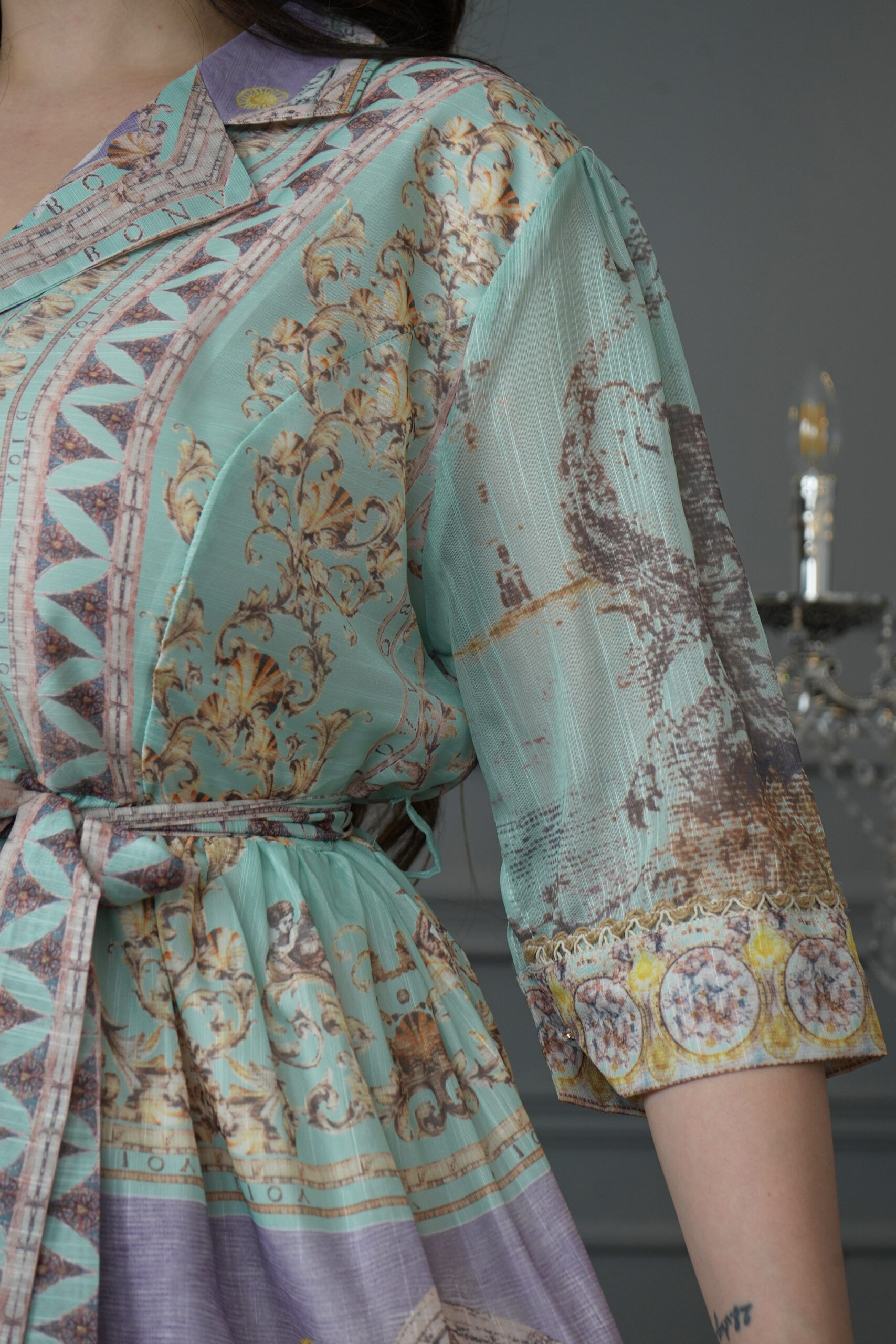 جلابيه بلياقه مندمجه بتشجر البيج و تيفاني
