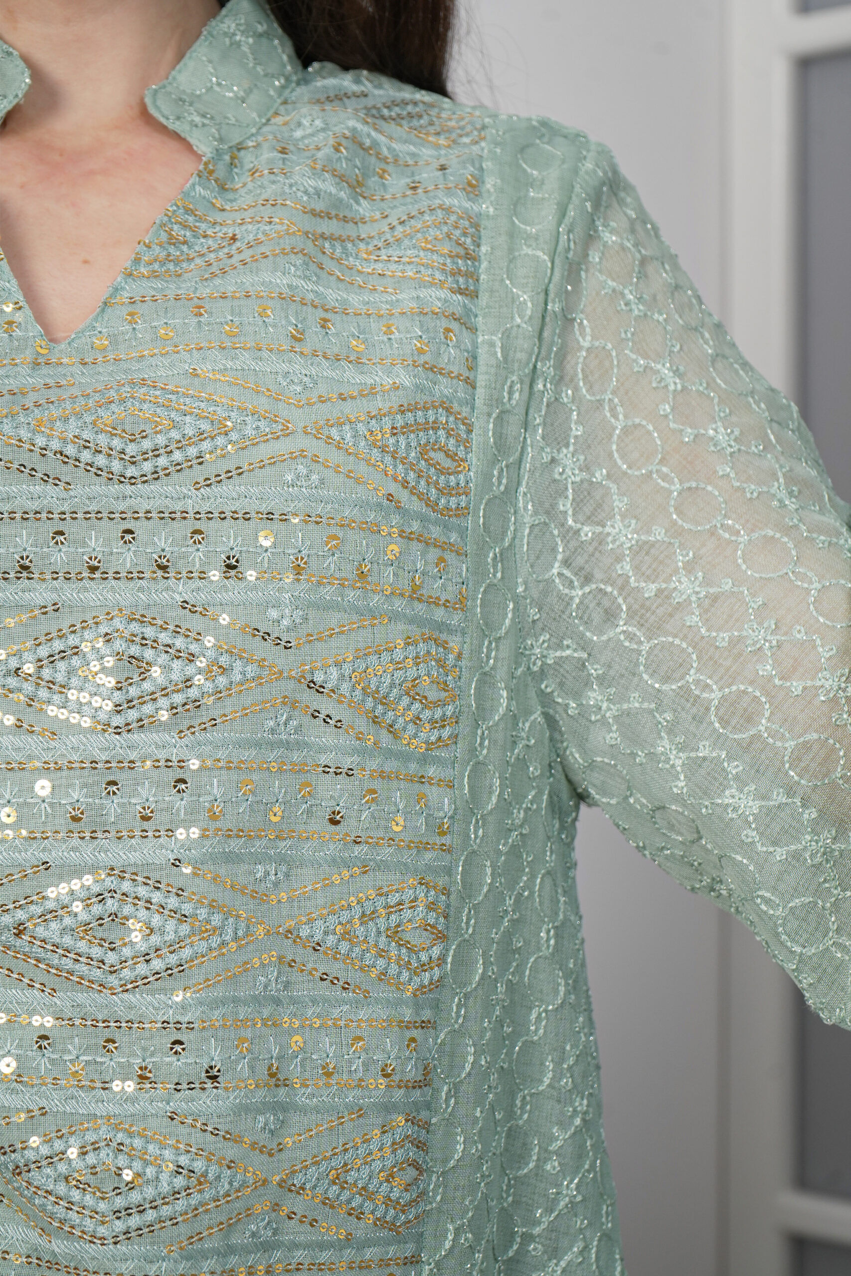 - نوع قماش: قطن لنن مطرز مع خام ترتر