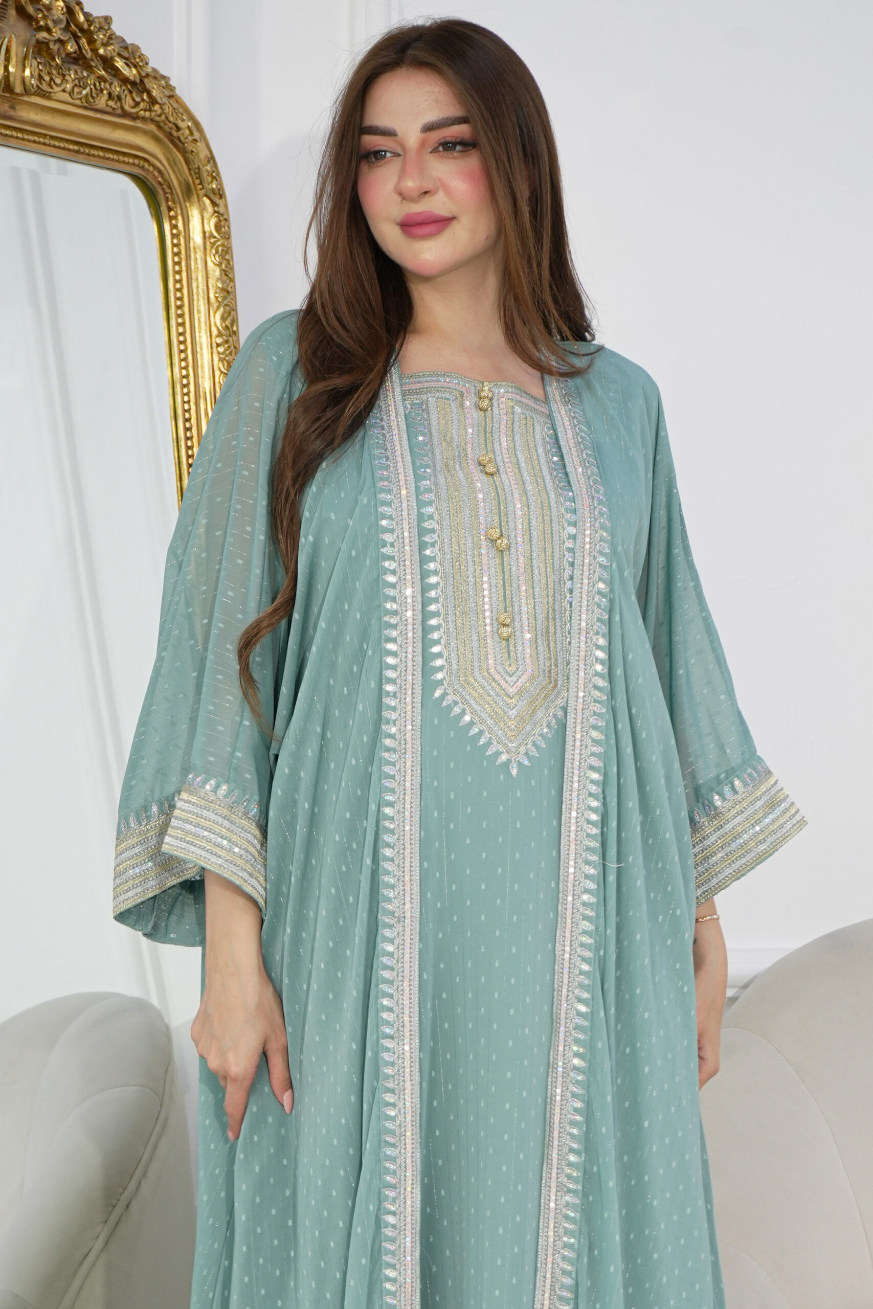 جلابيه تيفاني طبقتين بطبقه بشت شيفون