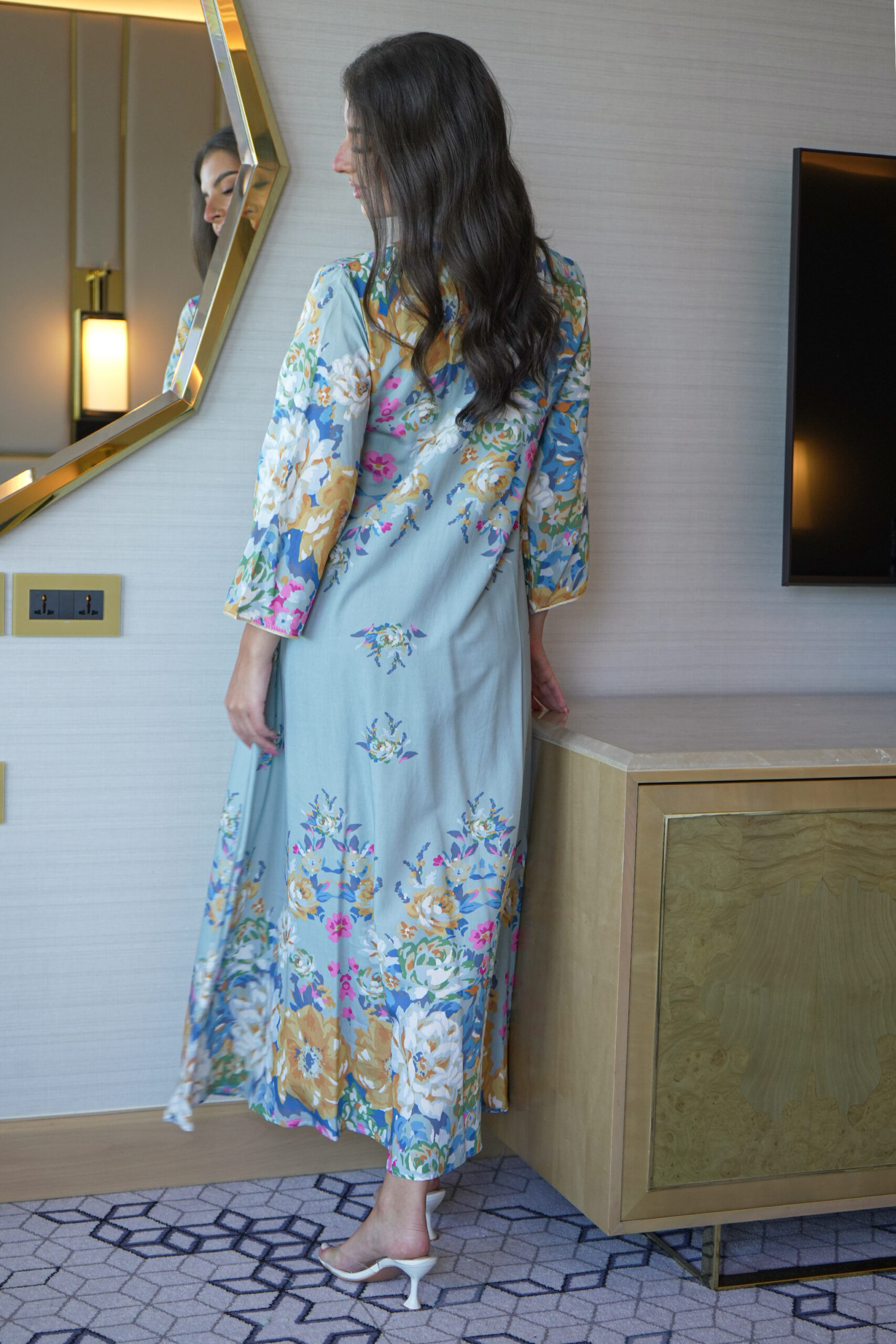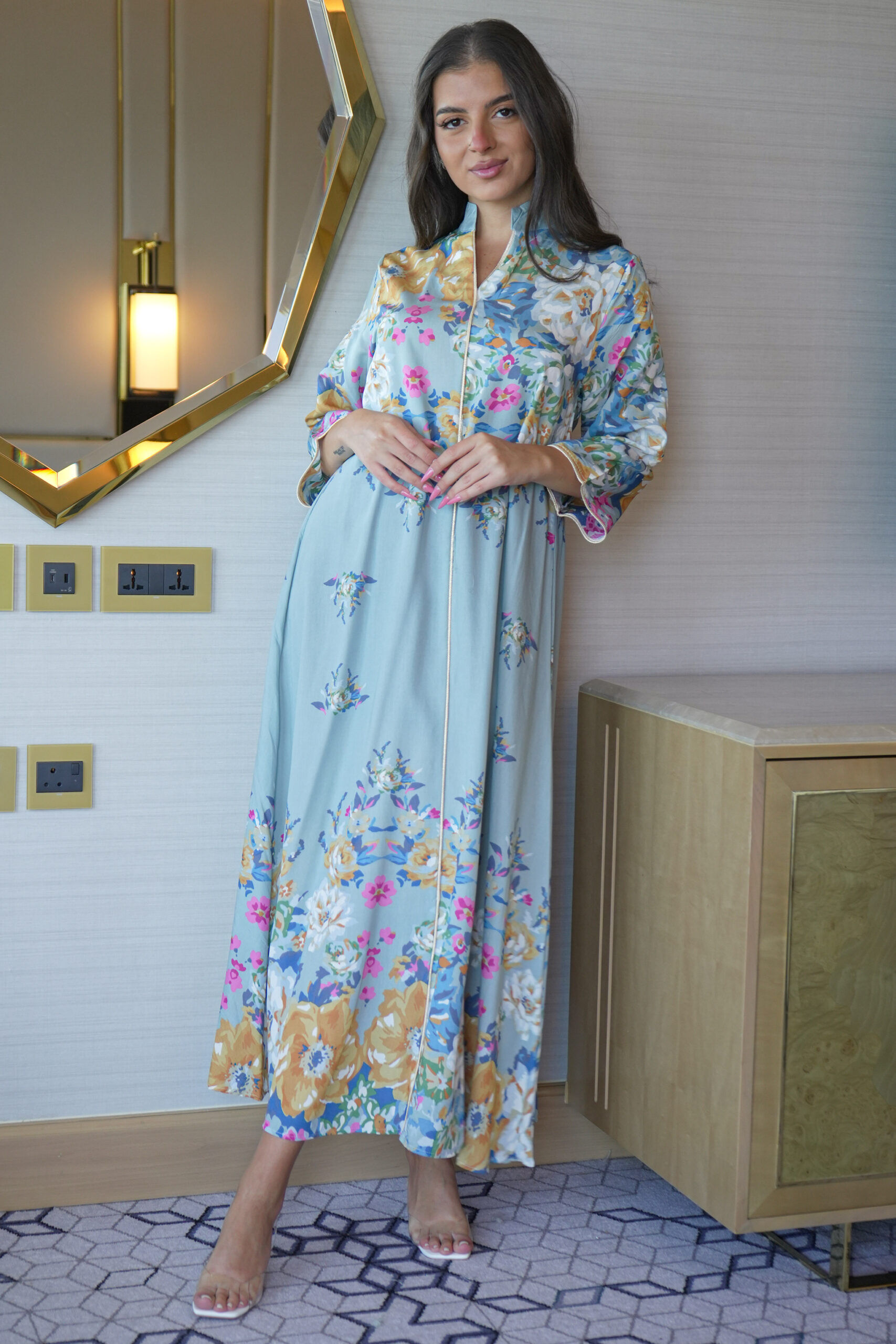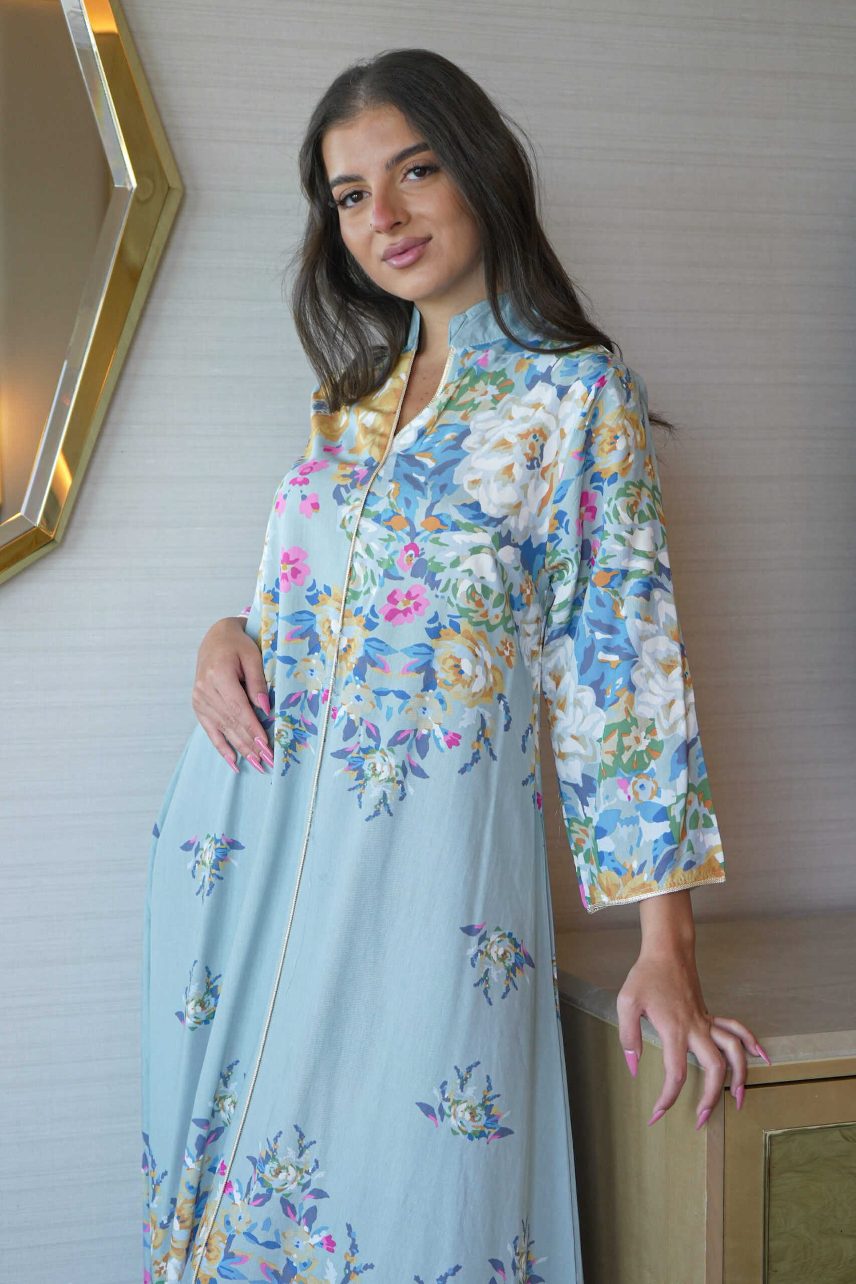 جلابيه سماوي بلياقه مشجره كامل بورود مرسومه (7)