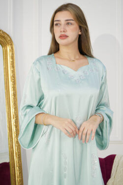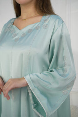 - الموديل: جلابية بلون تيفاني مطرزه بفصوص