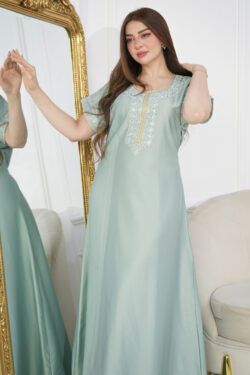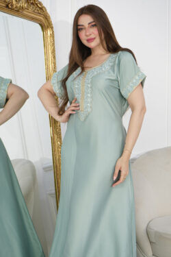 جلابيه اخضر بطبقه داخليه و تطريز من الصدر ممتده على اكتاف