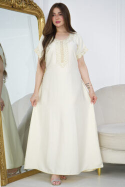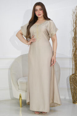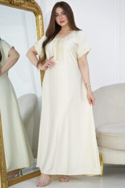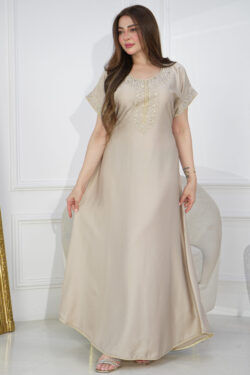 جلابيه بتطريز عربي وبكم وسيع بيج