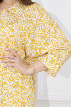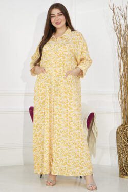 جلابيه اصفر قطن بلياقه و جيوب