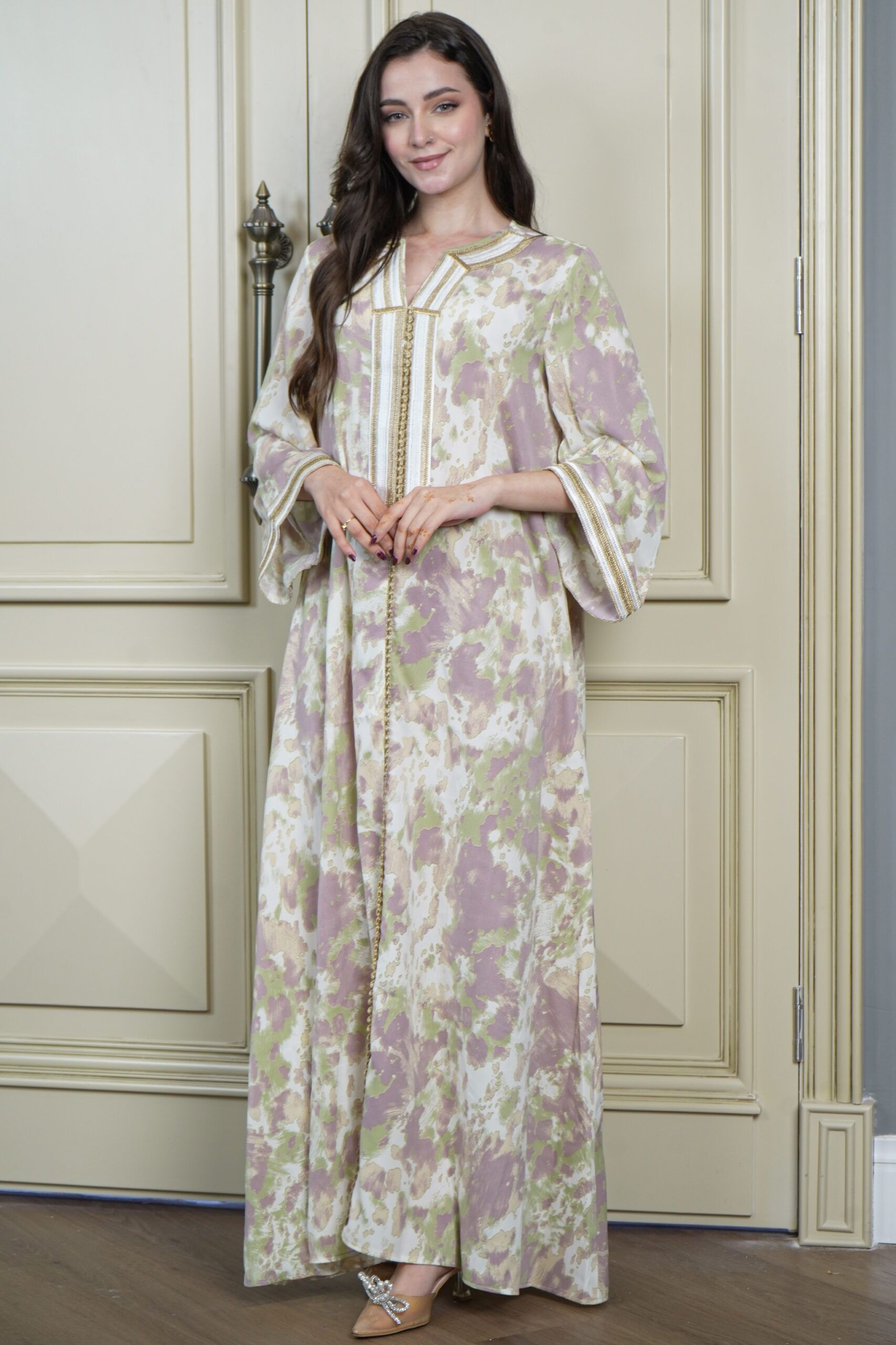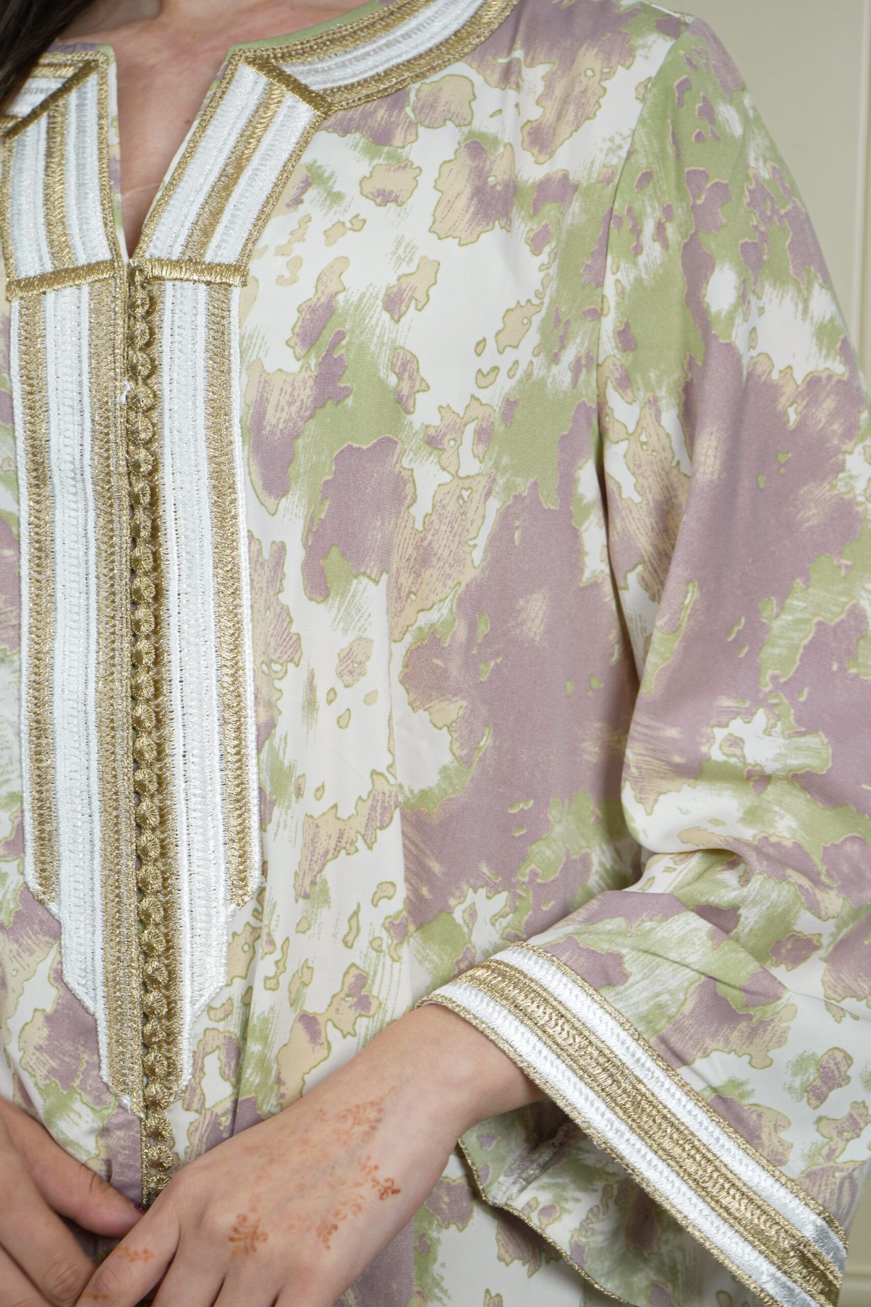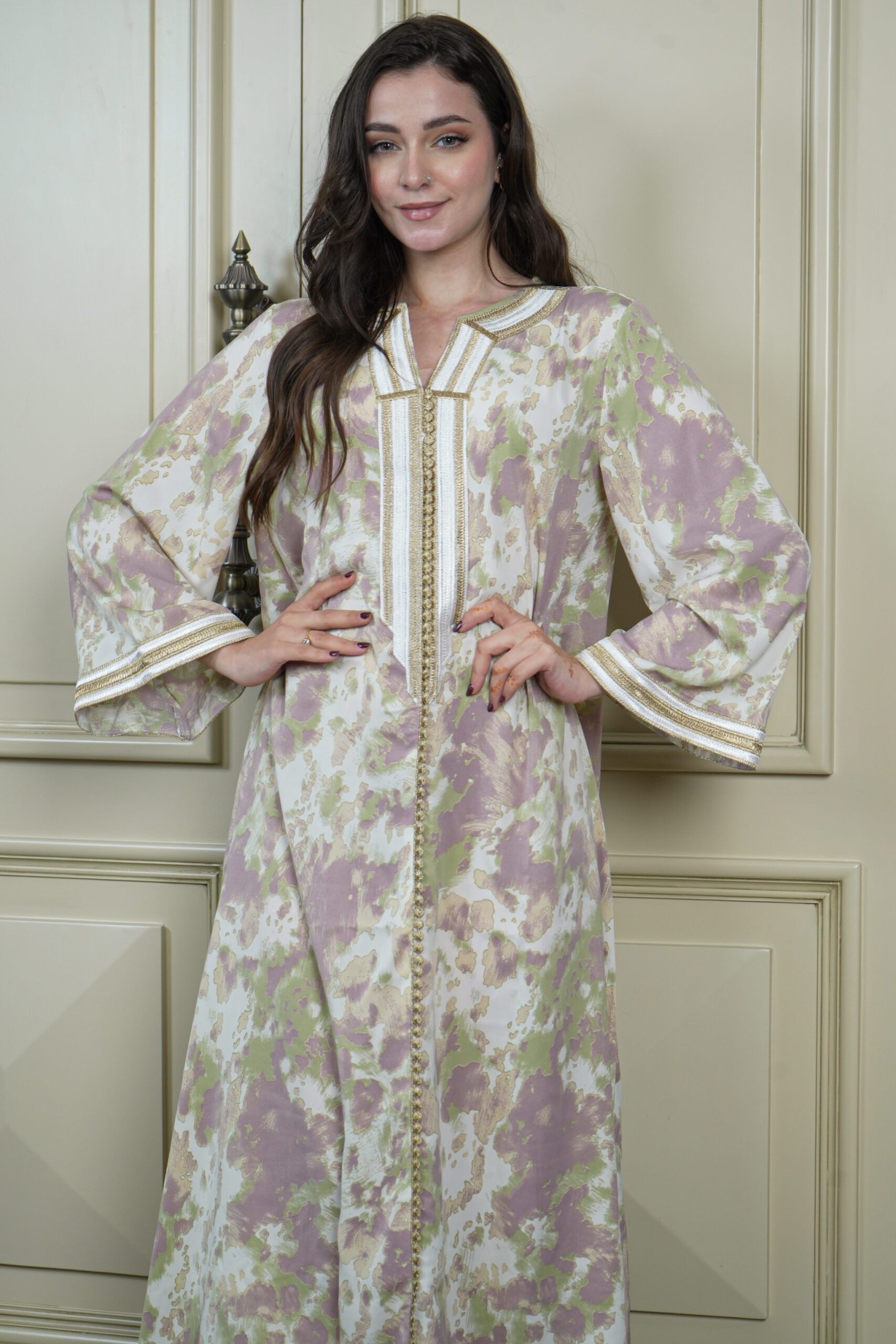 - التصميم : جلابية مطرزة بخيوط ذهبي