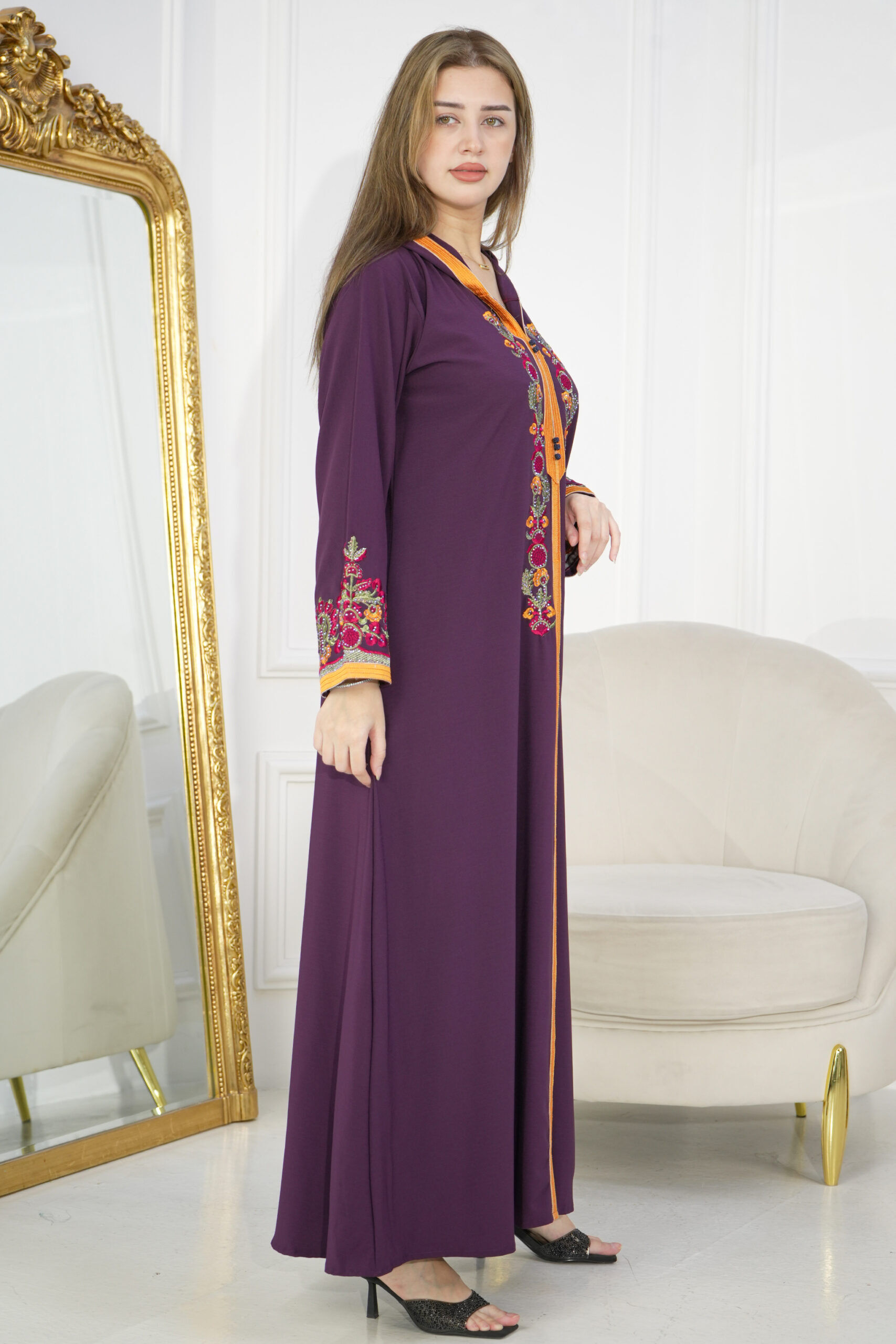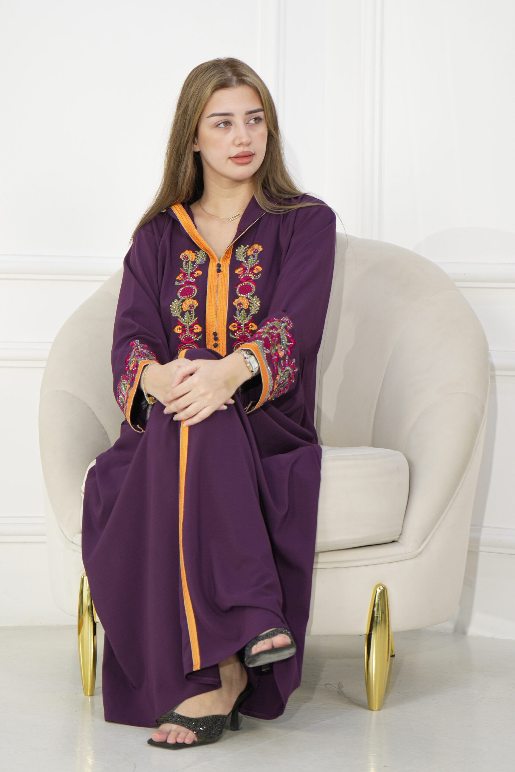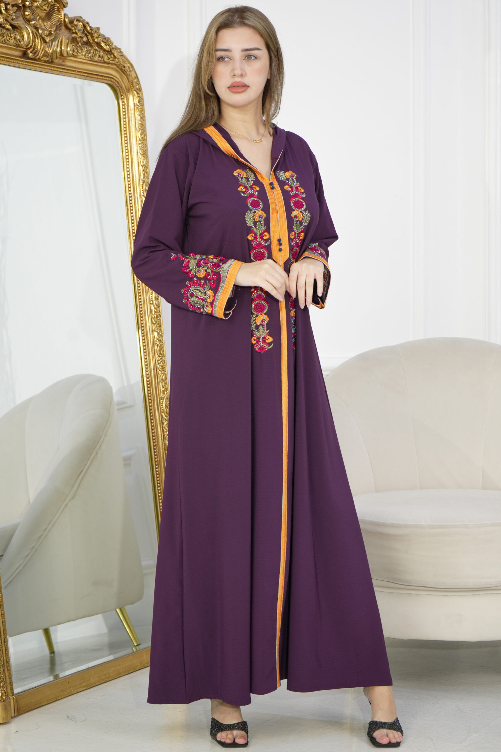جلابيه موف مغربيه بتطرز شك من امام
