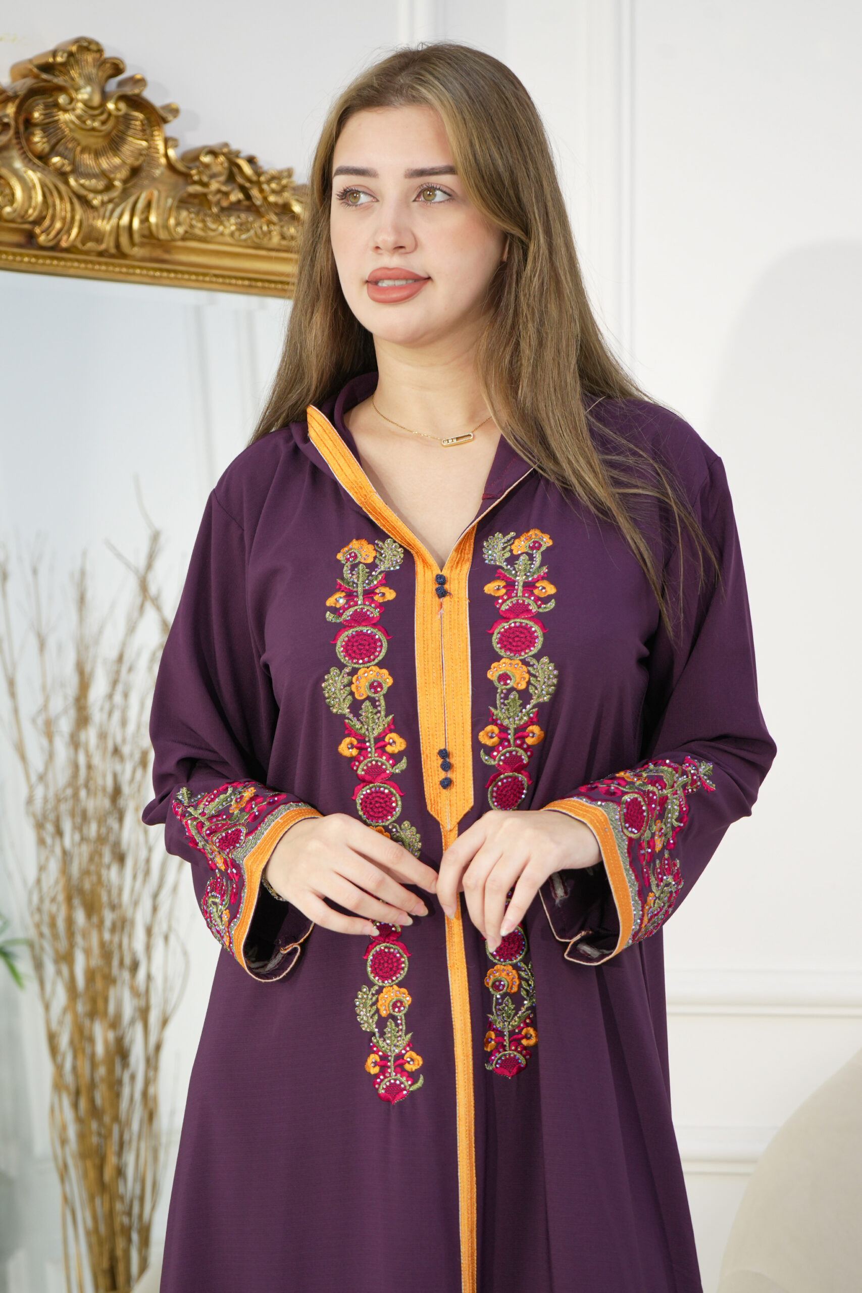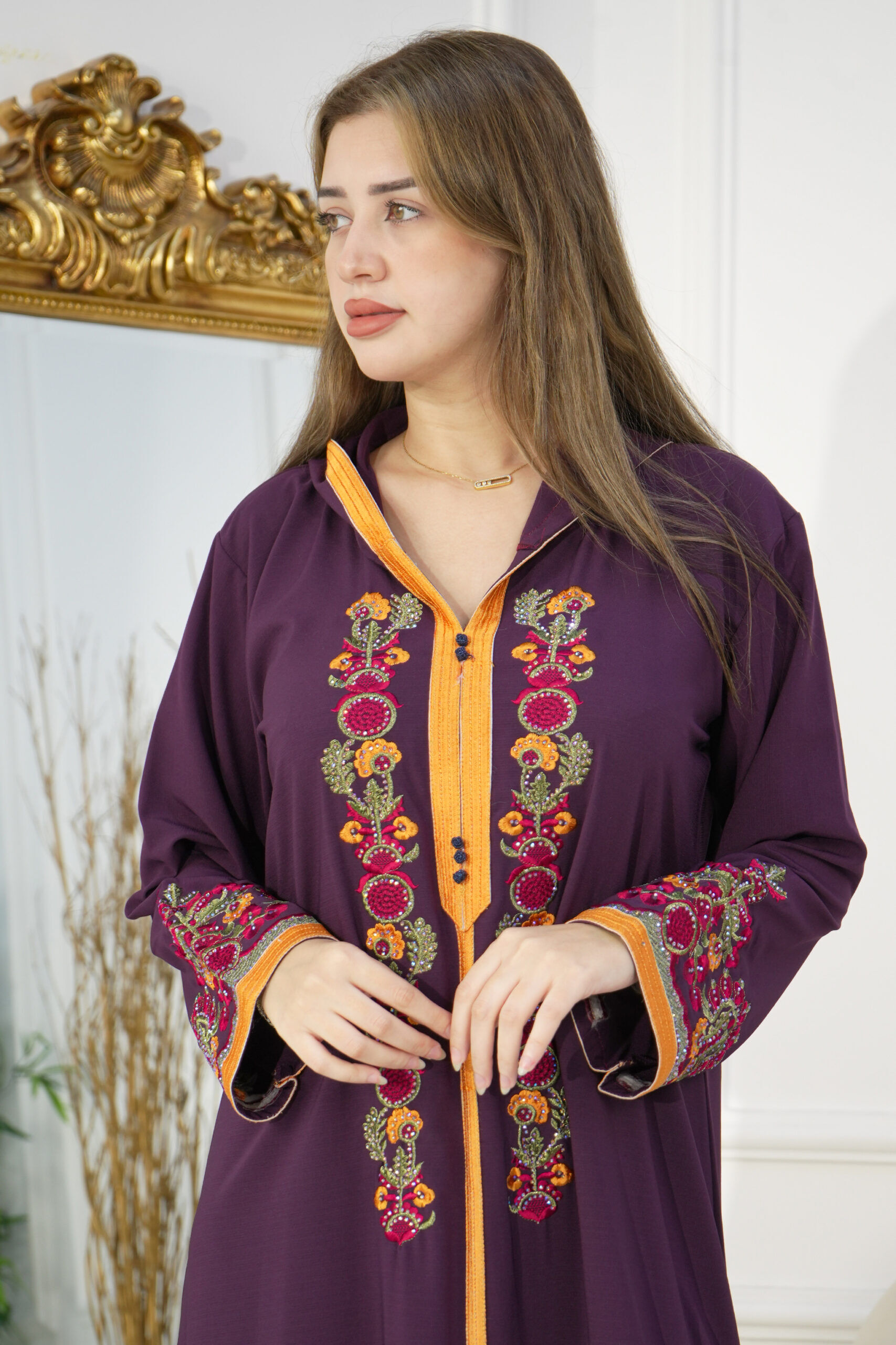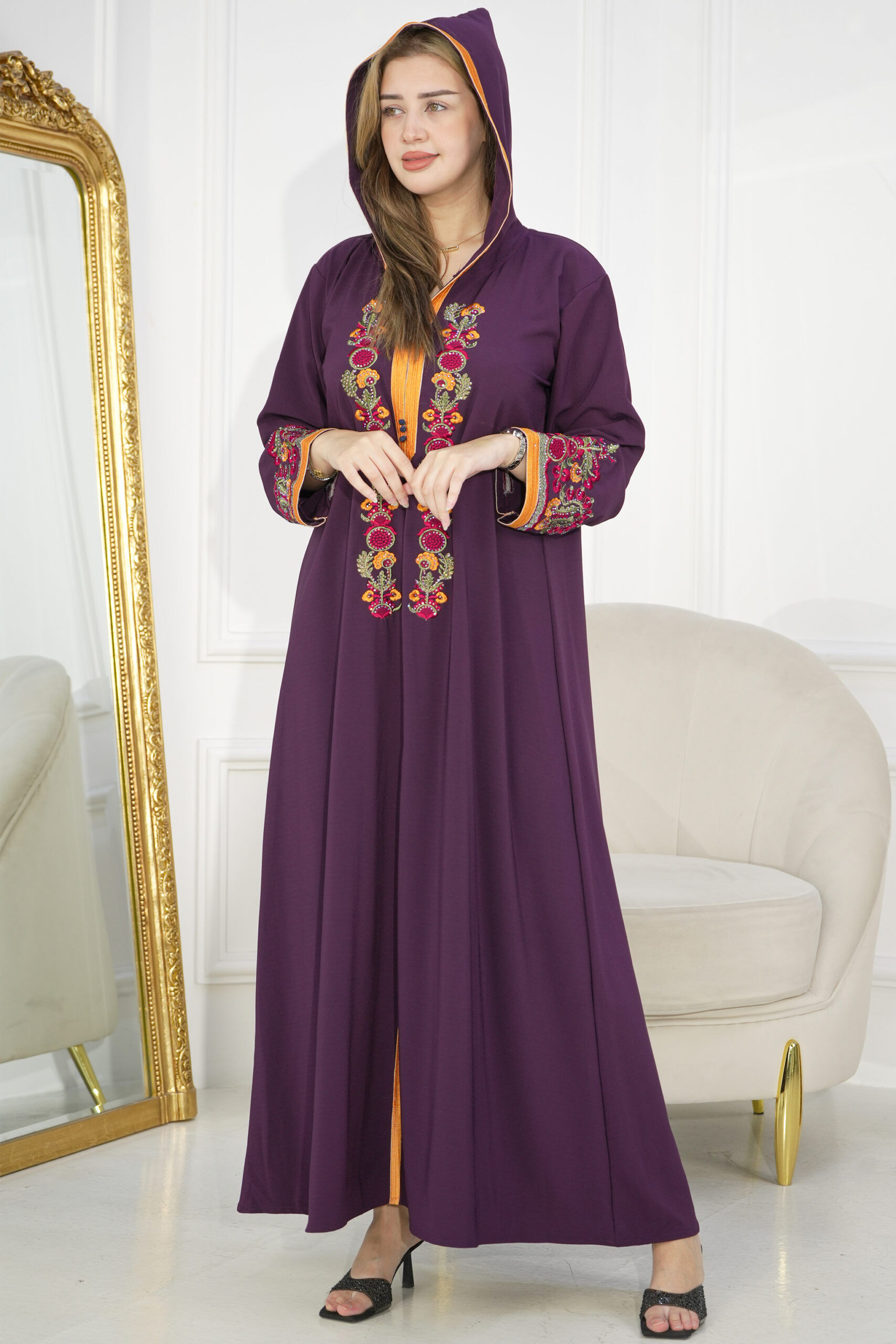 جلابيه موف مغربيه بتطرز شك من امام