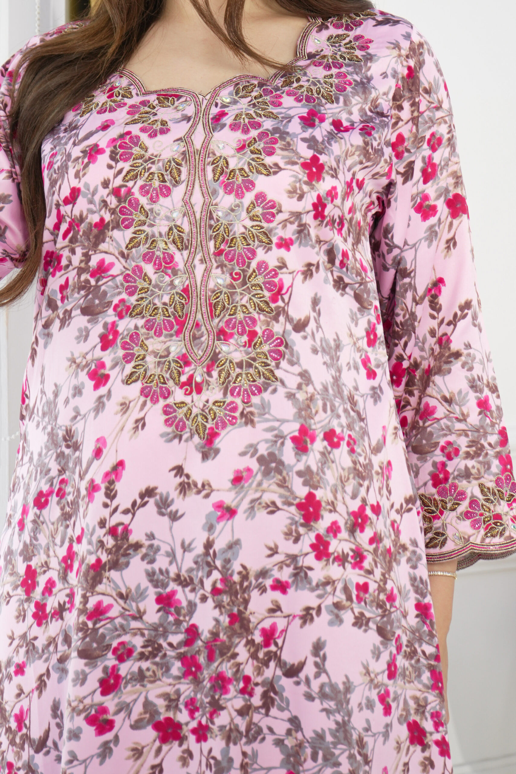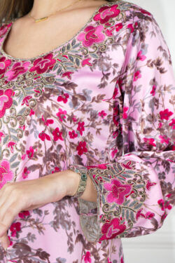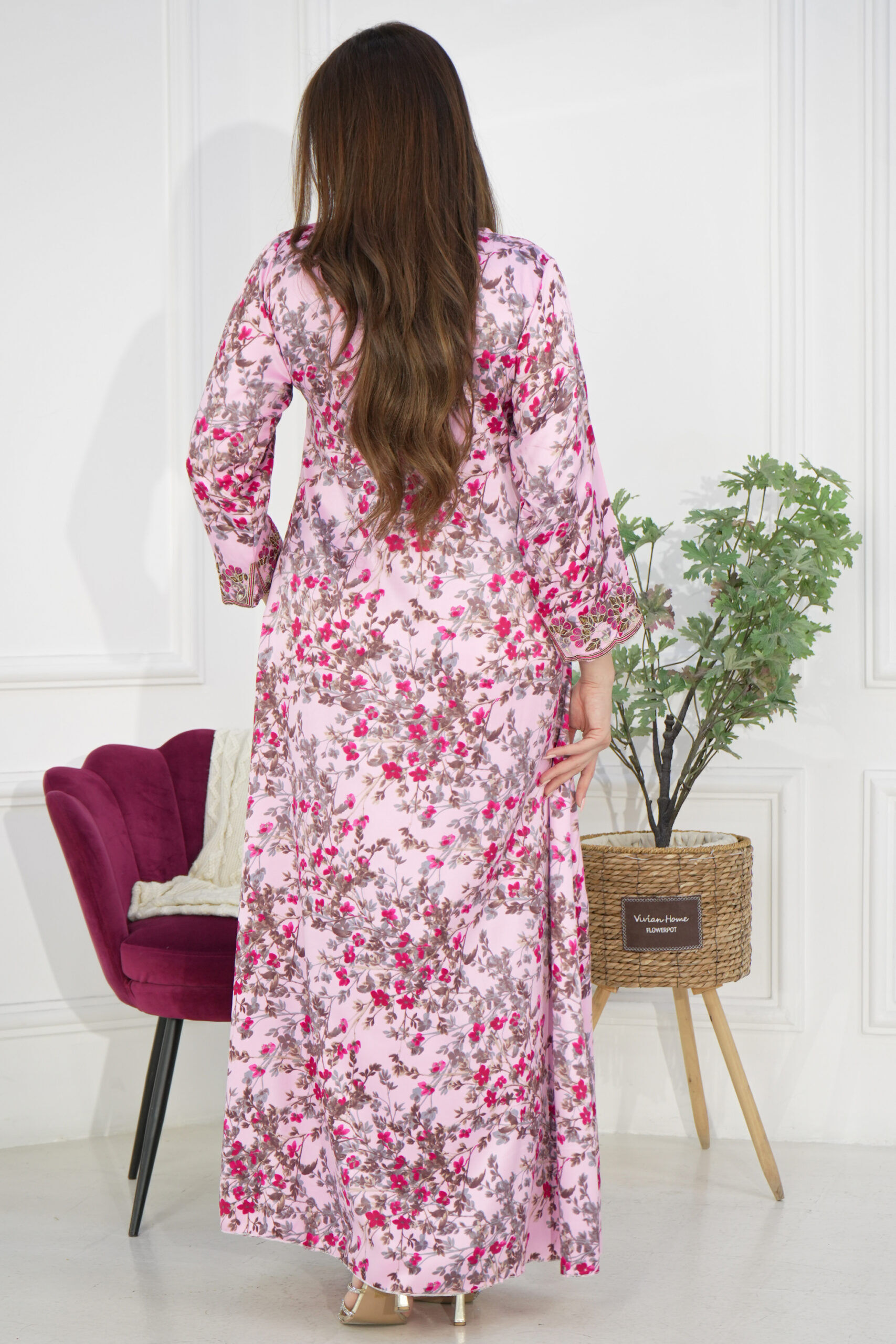 جلابيه وردي مخاوير اماراتيه بحلق محدد و فصوص (3)