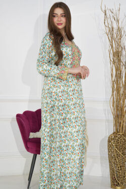 جلابيه ابيض بقماش مشجر من نفسه بكم مطاط