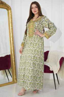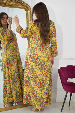 جلابيه اصفر مخاوير اماراتيه بحلق محدد و فصوص (3)