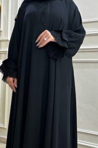 عباية بأكمام دانتيل مطاط و شك على الأكمام