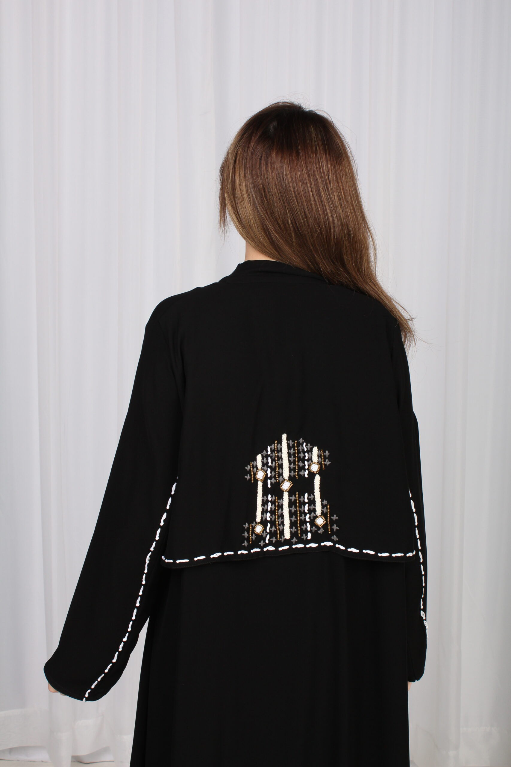 - لأنها عبايه حلوه مزخرفه بشك يدوي من الخرز الفخم ، ليمنح إطلالتكِ بريقاً مميزاً .