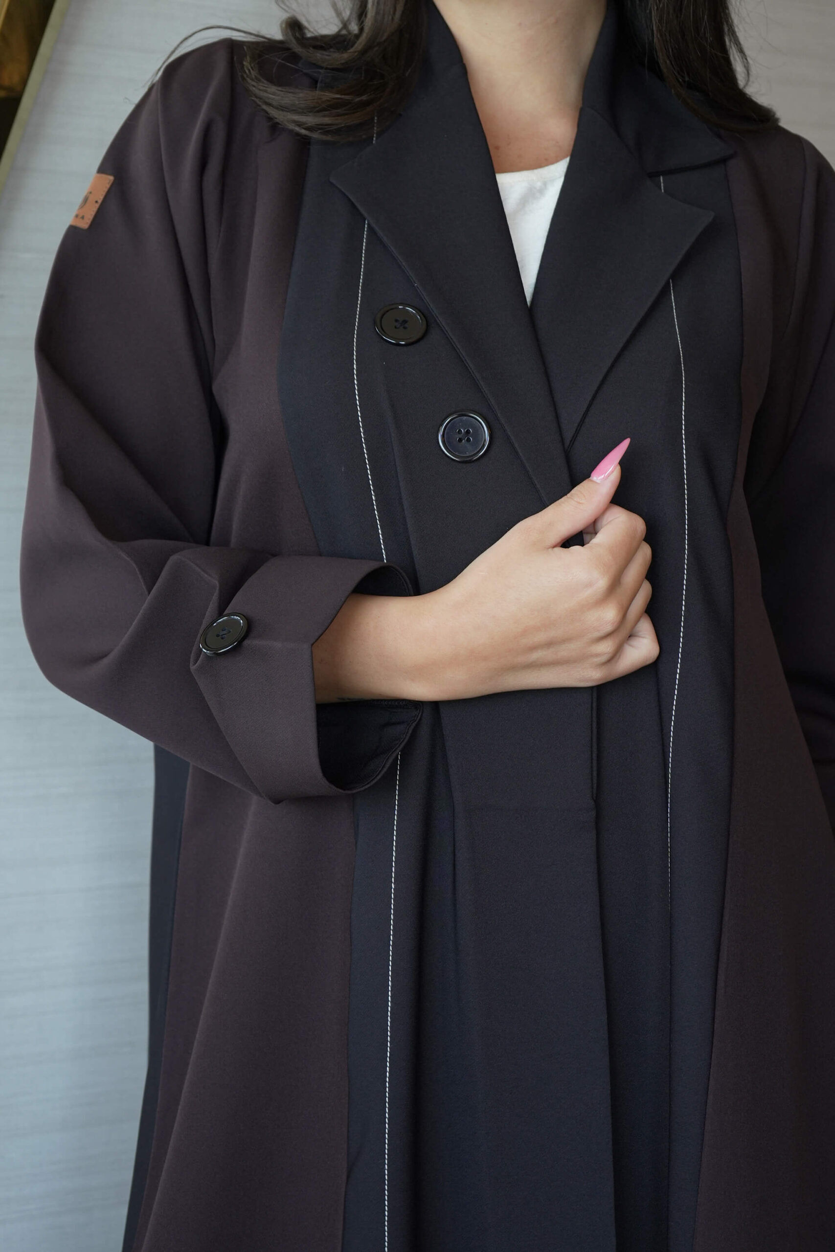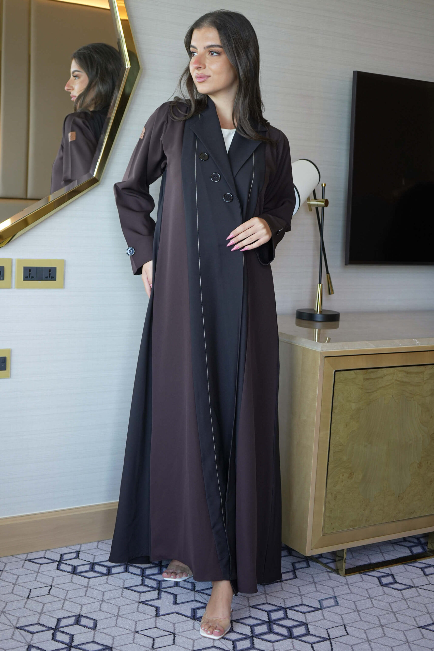 عباية غلا بليزر اسود مندمجة مع قماش بني على اطراف