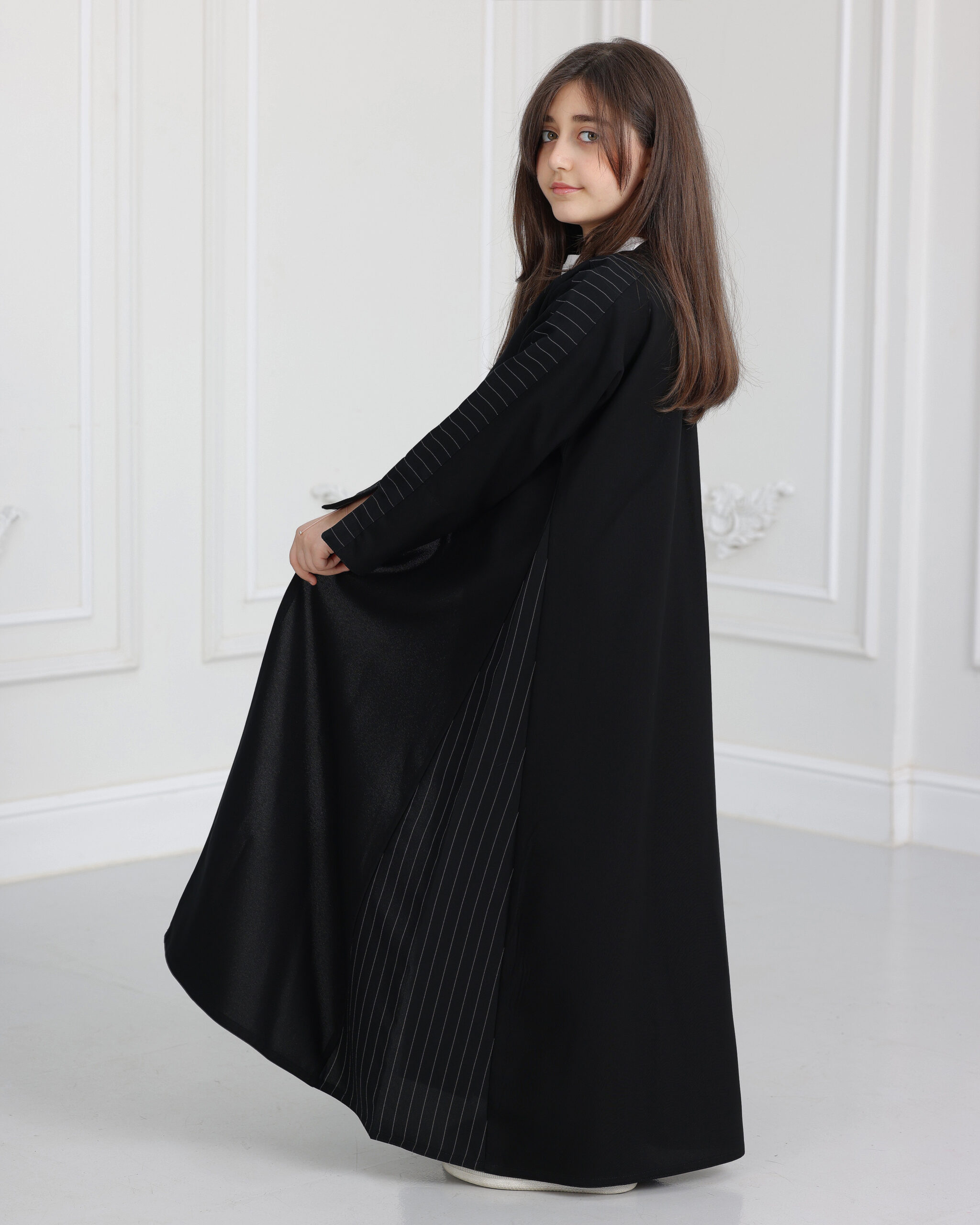عباية بناتي مندمجة بكتان مخطط ابيض