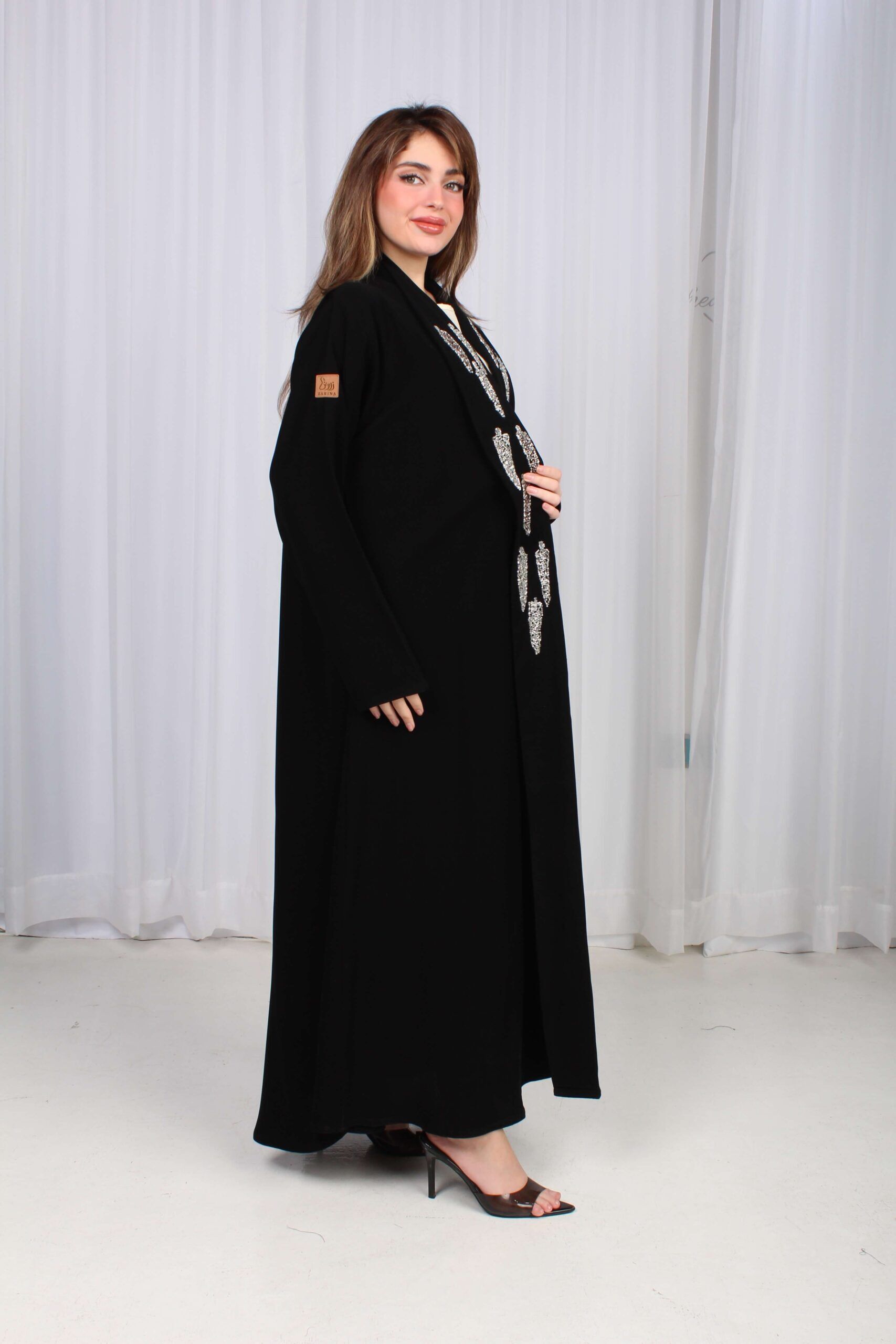 عباية سرداب الجاذبية السوداء بشك وخرز الأبيض ( شك ابيض )